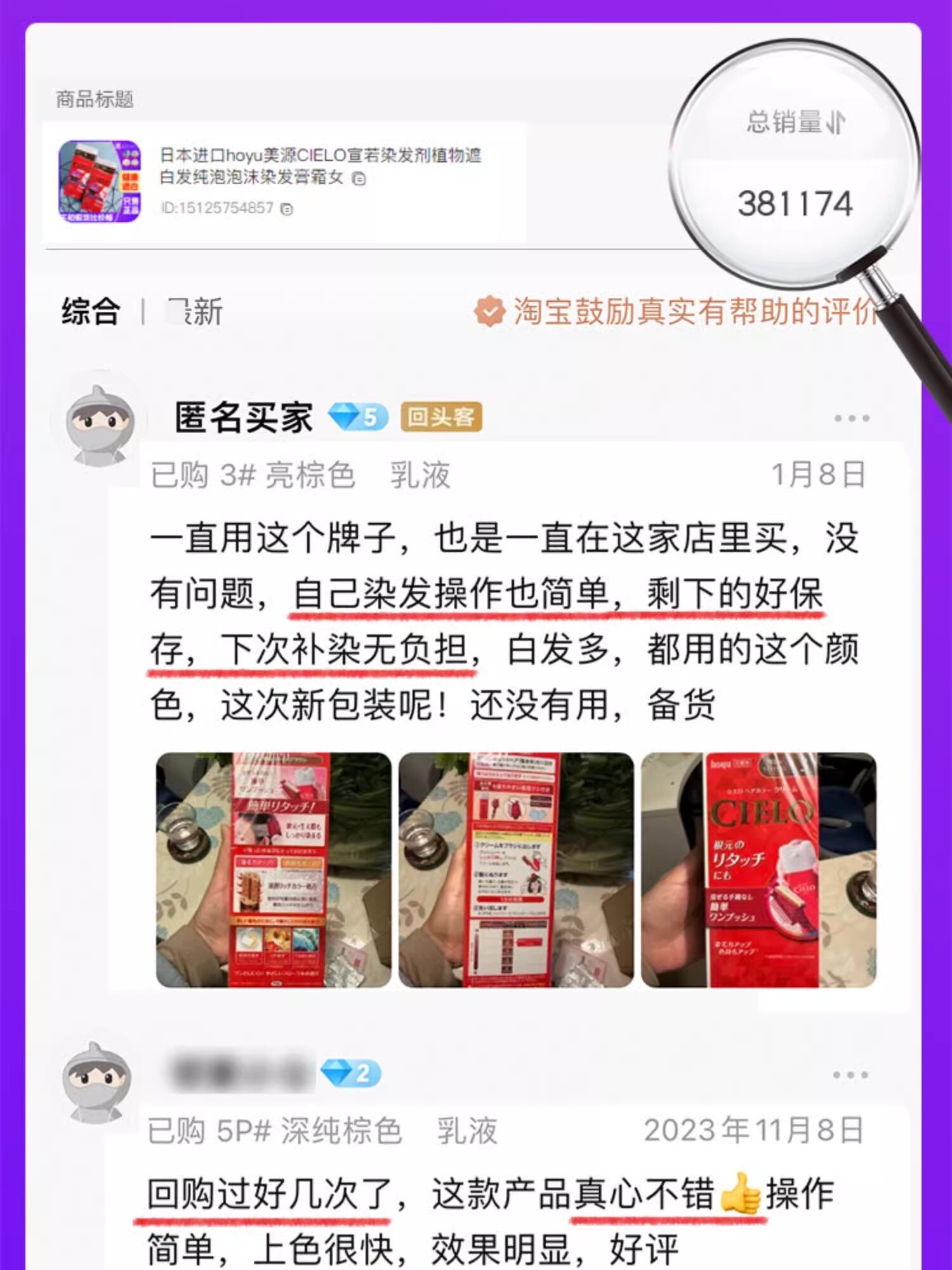 淘宝日本进口hoyu美源CIELO宣若染发剂植物遮白发纯泡泡沫染发膏霜女