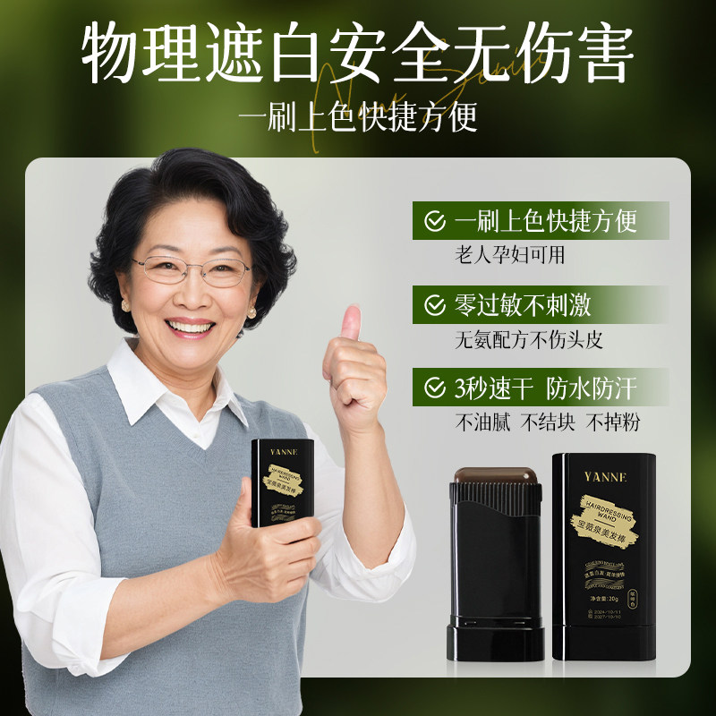 天猫遮盖白发神器一次性染发笔不掉色美发棒遮白发植物补色发根黑发纯