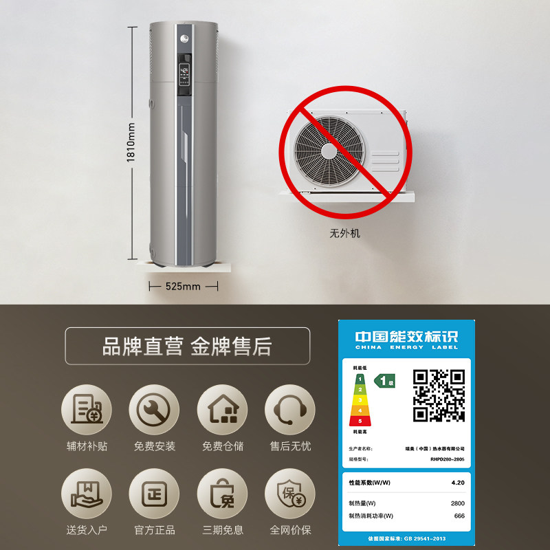 天猫美国瑞美Rheem空气能热水器280L一级能效热泵出口大容量奥丁Odin