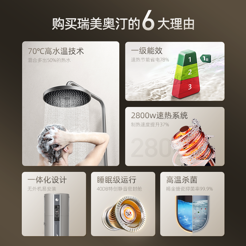 美国瑞美Rheem空气能热水器,全新推出的奥丁Odin系列280L一级能效热泵热水器成为市场热门产品。其凭借强大的大容量和高效的能源利用赢得广泛好评。作为一款进口高端热水器,它采用先进的空气能技术,节能环保,安全可靠。高效的热泵技术确保快速加热,一级能效标准更是为用户节省能源成本。这款热水器不仅适合家庭使用,也适用于商业场所。奥丁Odin系列以其卓越的性能和时尚的设计,为用户带来舒适的使用体验,是您明智的选择。