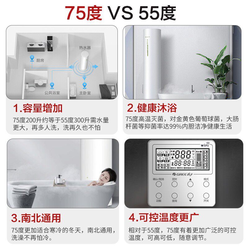 格力空气能热水器水之盈家用系列,全新推出200智控大容量热泵热水器。此款热水器采用先进的空气能技术,环保节能,拥有高效的3级能效表现,节能效果显著。其容量大,可供应全家连续热水需求,满足家庭洗浴、洗涤等多种用途。独特的75度高温加热技术,快速热水,节省您宝贵的时间。智能化控制,操作简单便捷。不仅保证了家庭的舒适洗浴体验,也兼顾了家居的实用性与美观性。格力空气能热水器,为您打造温馨舒适的家居生活。