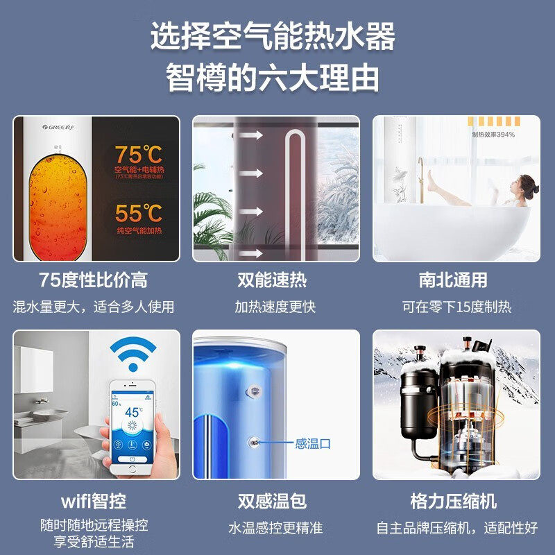 淘宝格力空气能热水器水之盈家用200智控3级能效75度热泵热水器大容量