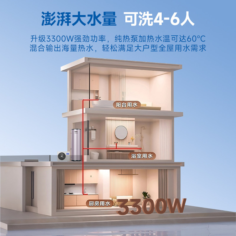 【政府补贴】海尔空气能热水器200/300升家用热泵变频速热节能