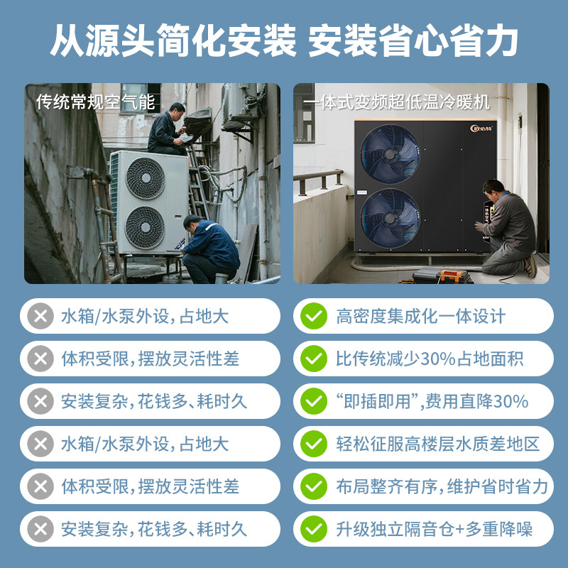 欧必特超低温冷暖变频空气能热泵一体机,专为北方农村小区地暖取暖采暖设计。采用先进的冷暖变频技术,能够在超低温环境下稳定运行,提供高效的供暖效果。该一体机集成了空气能热泵技术,节能环保,安全可靠。此外,它易于安装和使用,是农村小区采暖的理想选择。高效的制热性能和稳定的运行,让每个家庭都能享受到舒适的温暖。选择欧必特,选择舒适的生活。