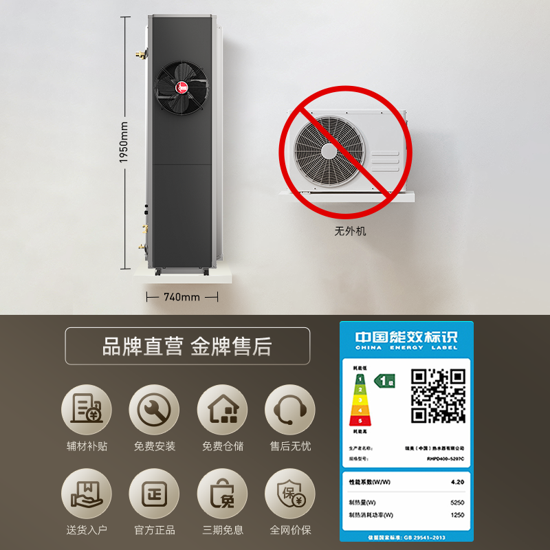 天猫美国瑞美Rheem400升空气能热水器家用商用别墅一级大容量维拉系列