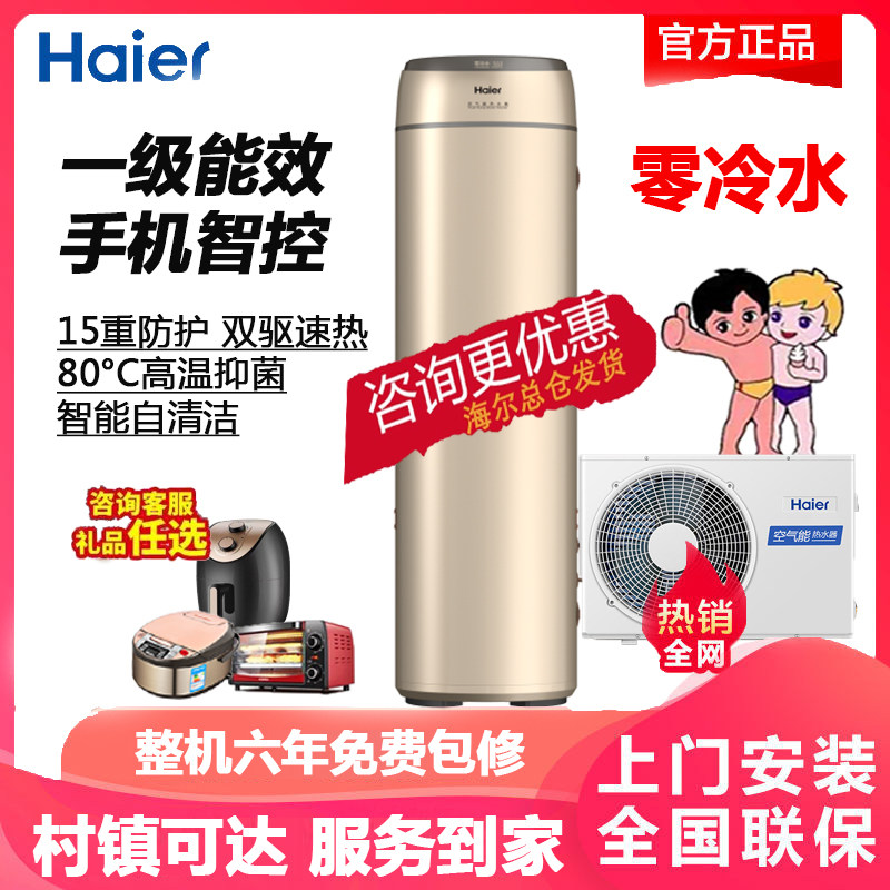 淘海尔空气能热水器家用空气源热泵一级省电200升fe7商用一体机300L