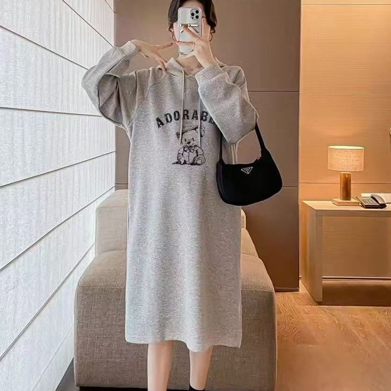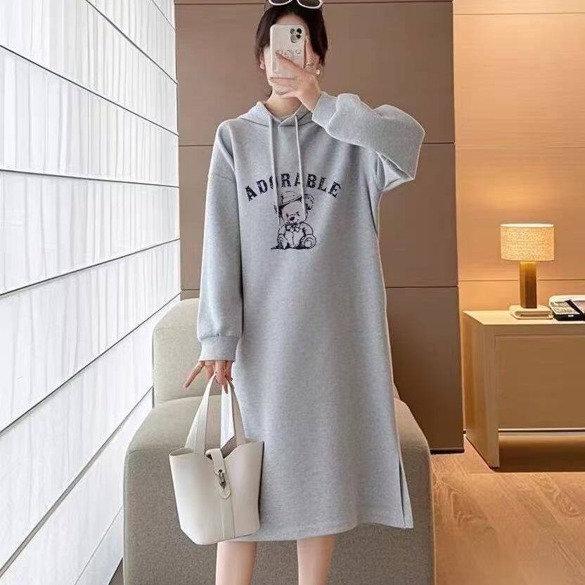 天猫孕妇装2025新款孕期秋装连衣裙辣妈孕期穿搭连帽纯棉卫衣裙子潮