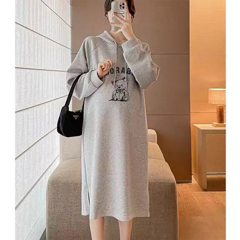 孕妇装2025新款孕期秋装连衣裙辣妈孕期穿搭连帽纯棉卫衣裙子潮