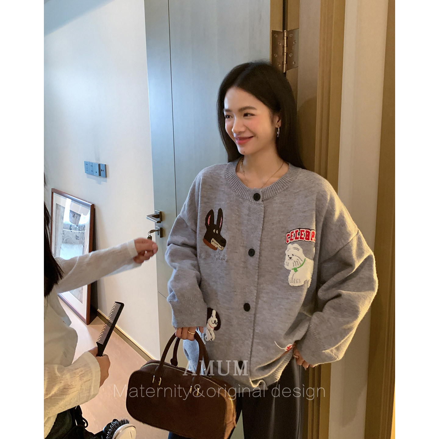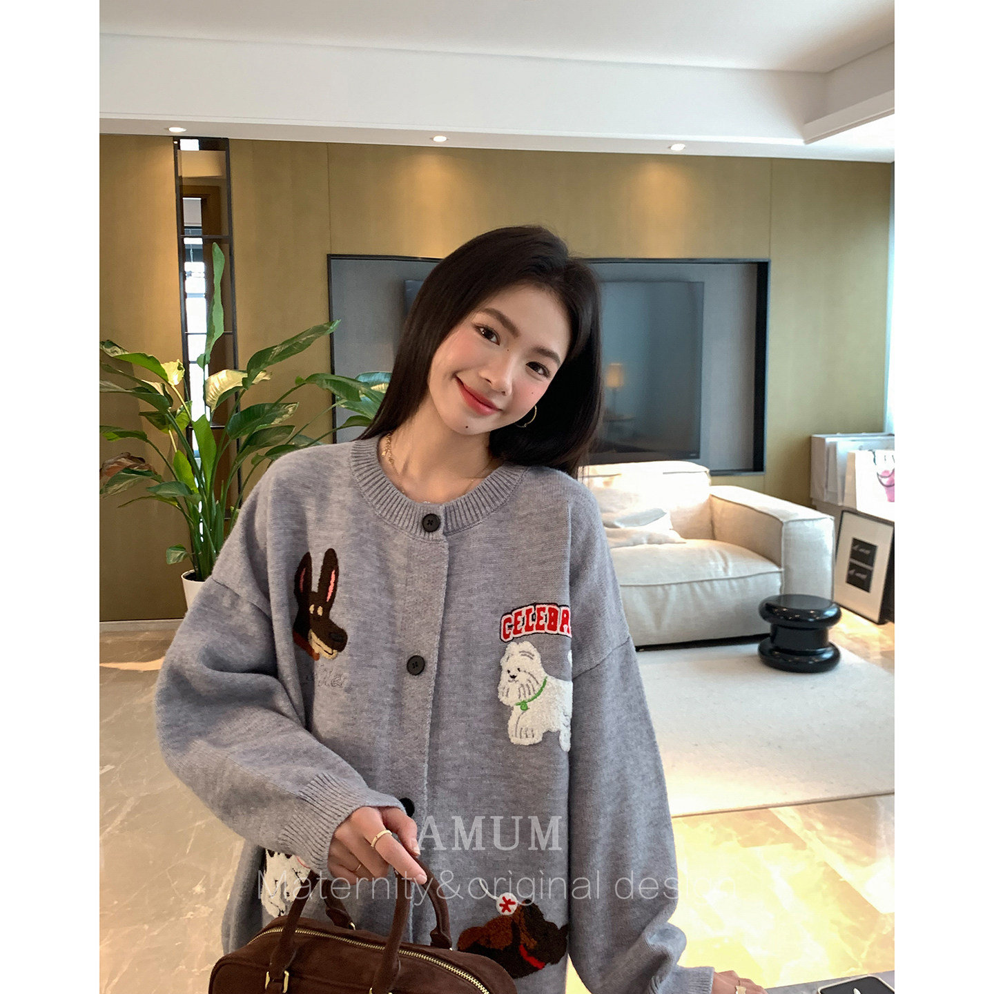淘宝◆AMUM孕妇装◆Hello Dog~加厚宽松复古趣味小狗软糯针织开衫毛衣