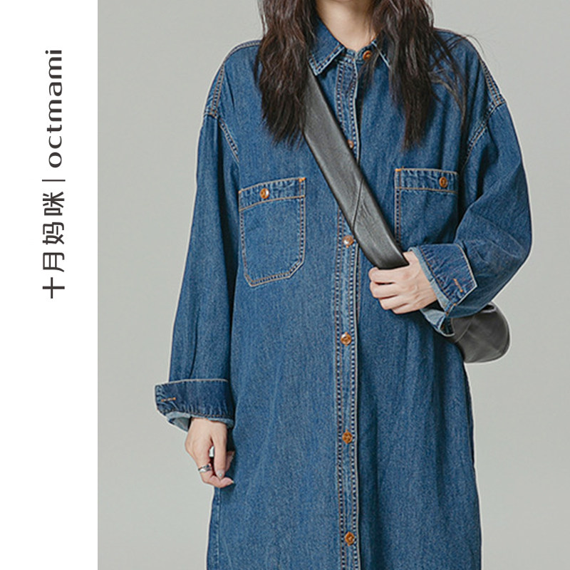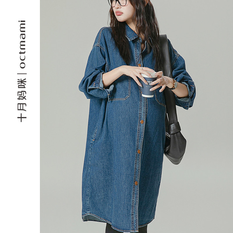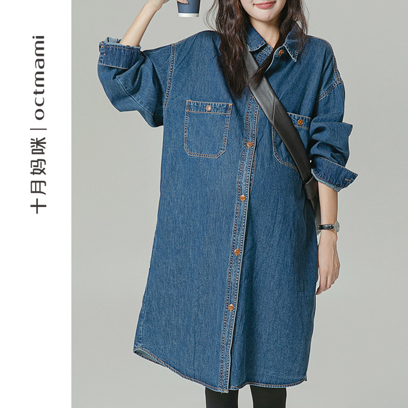 天猫十月妈咪孕妇牛仔衬衫连衣裙2025新款春秋外穿宽松遮肚不显怀秋装