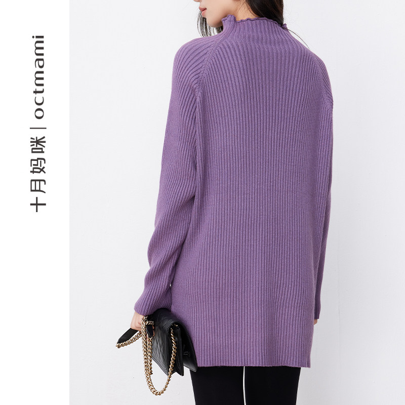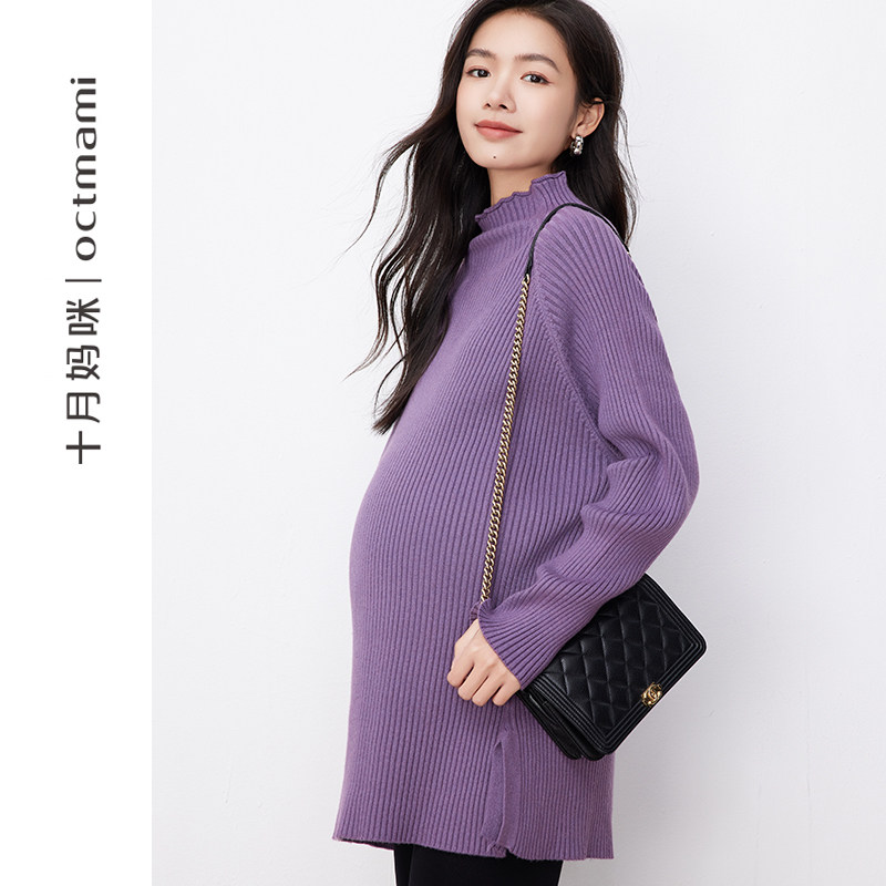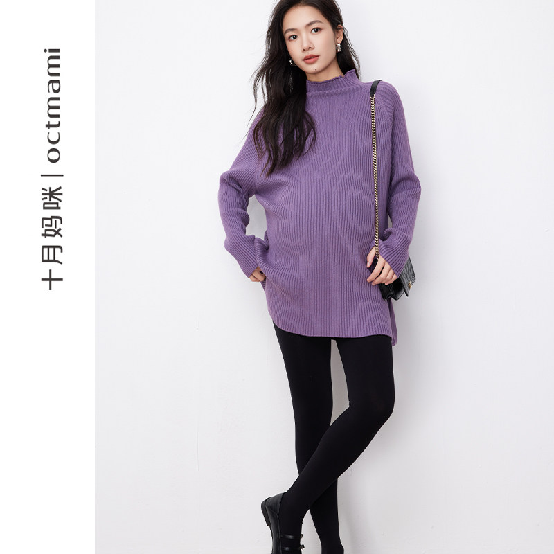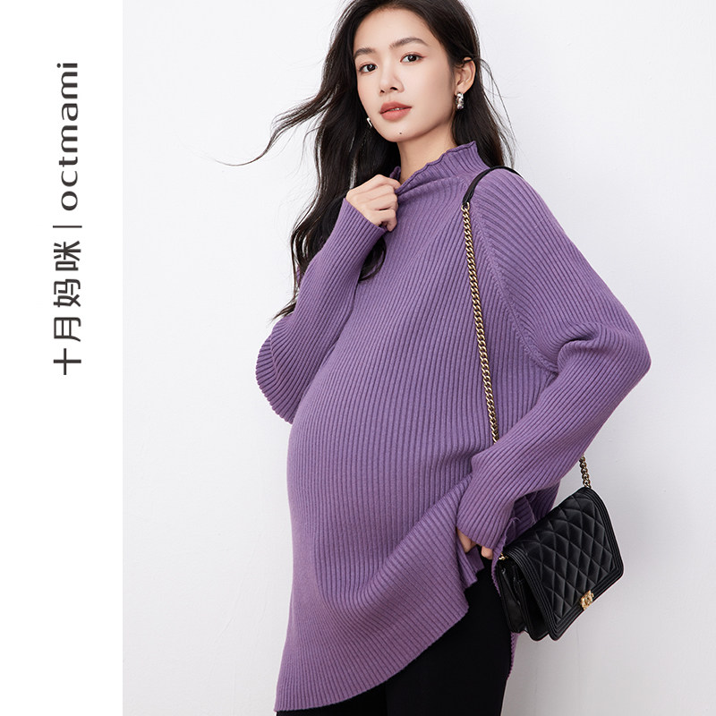 天猫十月妈咪孕妇高领坑条毛衣2024新款冬季怀孕内搭保暖上衣冬装