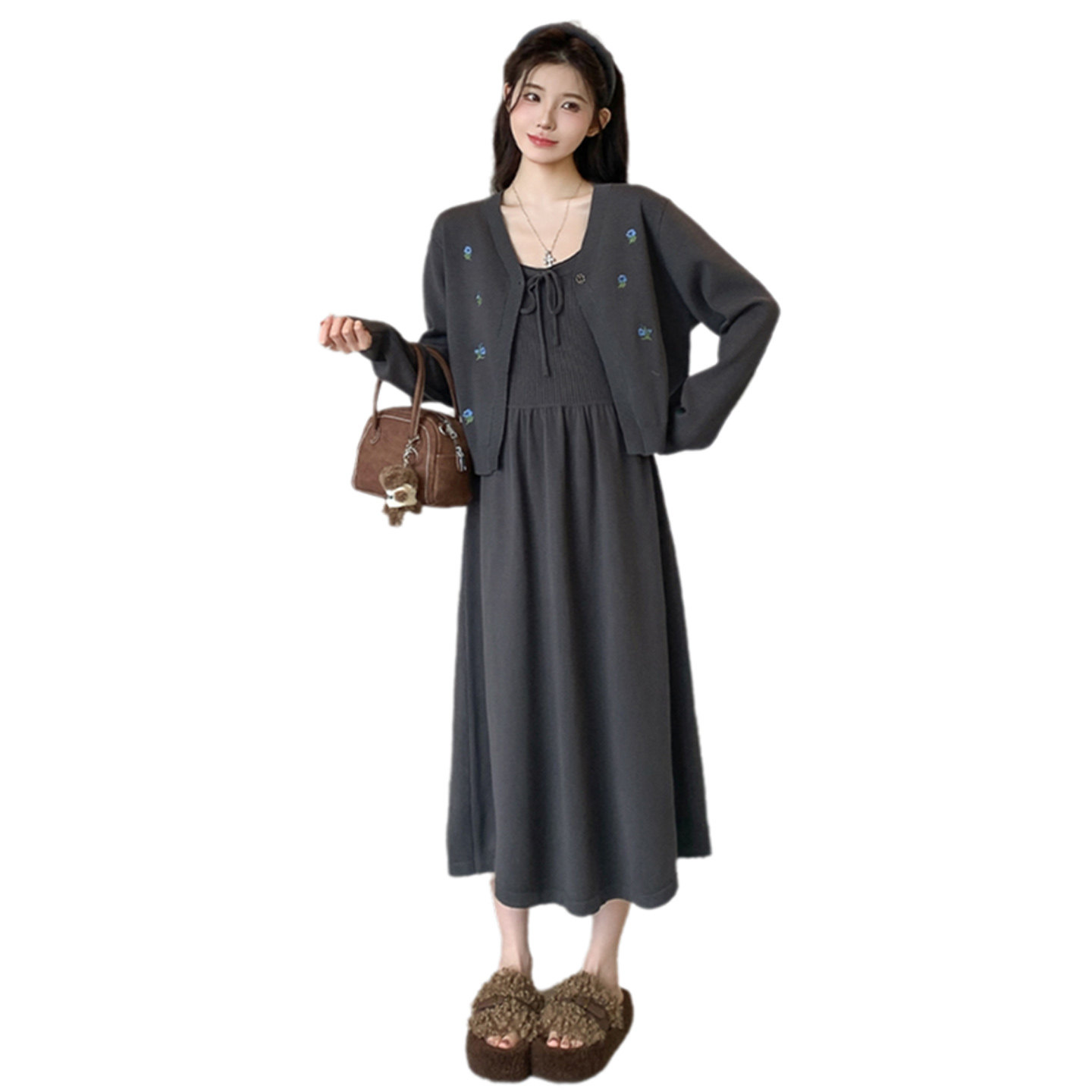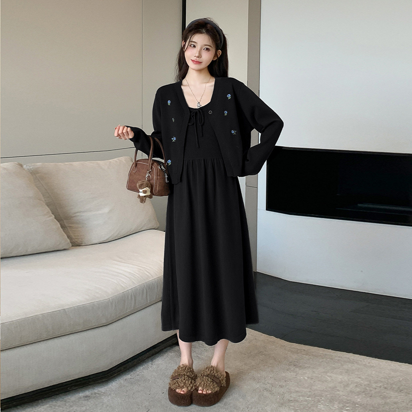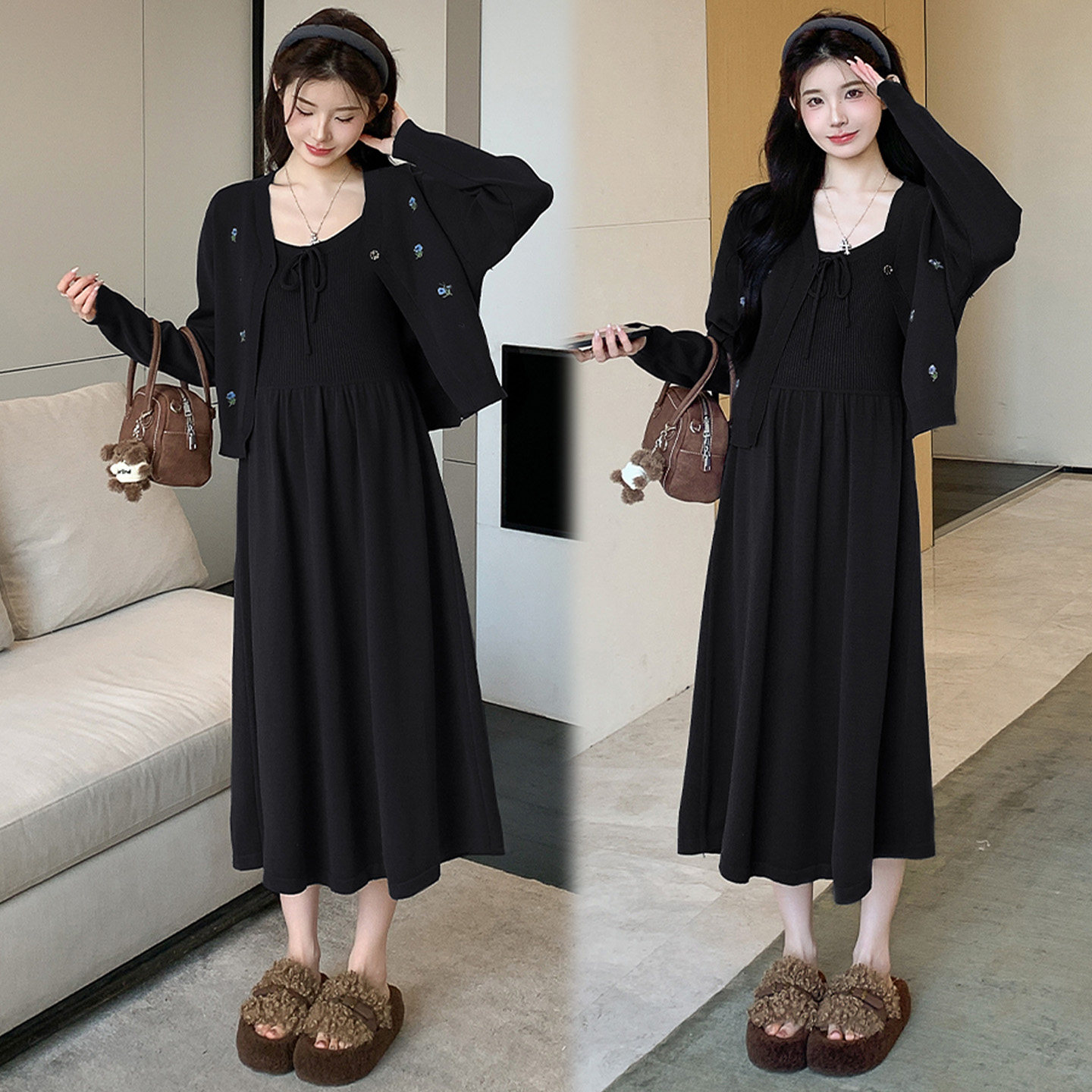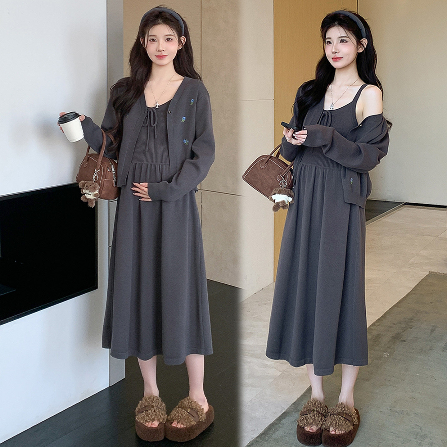 天猫孕妇针织连衣裙春秋款2025新款显瘦吊带裙网红时尚孕妇装套装秋装