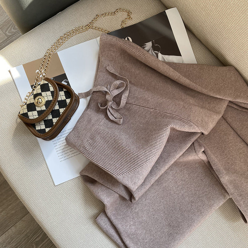 孕妇套装时尚洋气时髦卡其色针织宽松遮肚毛衣两件套2026新款秋冬