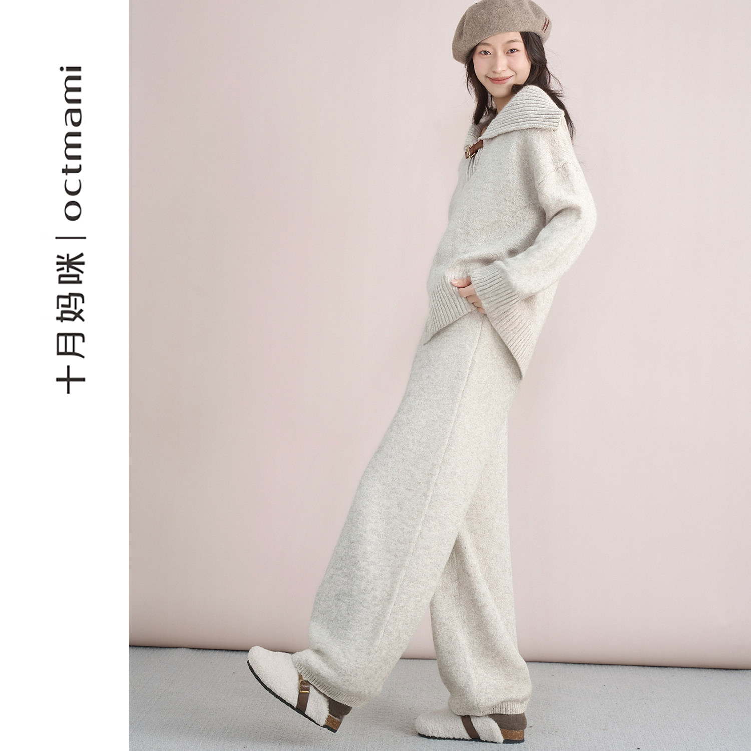 天猫十月妈咪孕妇套装2025新款冬季外穿宽松大翻领针织上衣两件套冬装
