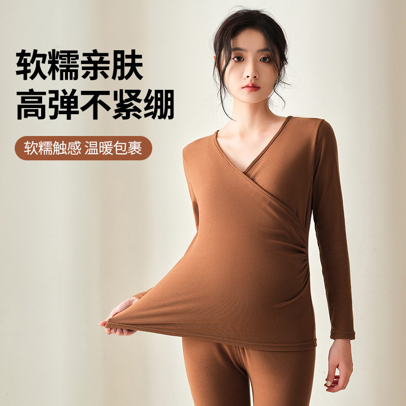 淘宝孕妇裤秋冬季新款保暖内衣套装产后月子服可调节秋衣睡裤哺乳上衣