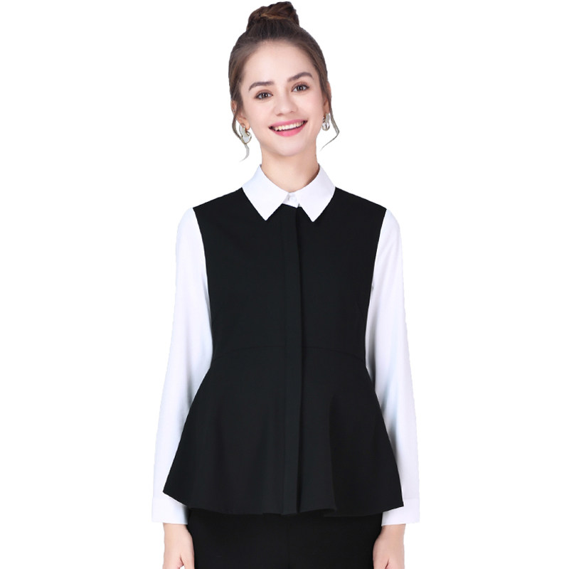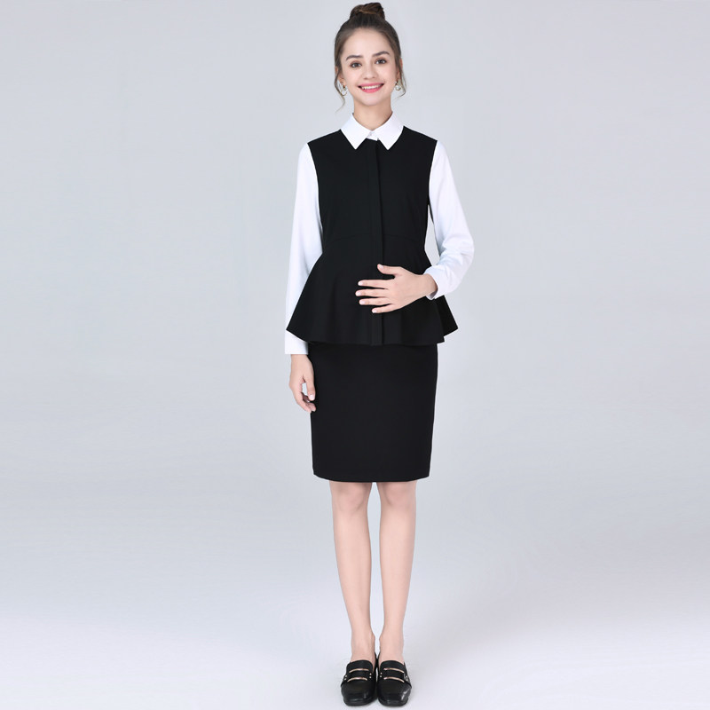 淘宝孕妇装春秋季上衣娃娃衫衬衫遮孕肚长袖黑白色职业面试工作服衬衣
