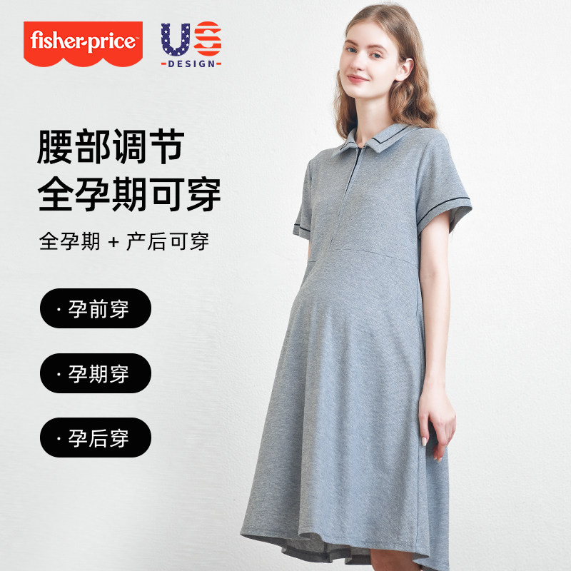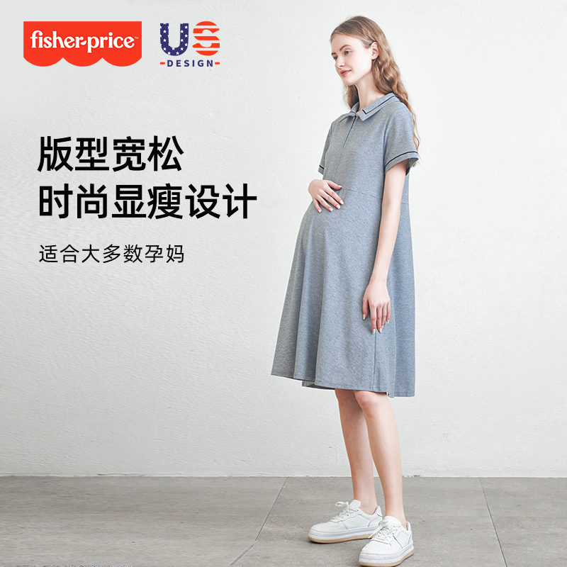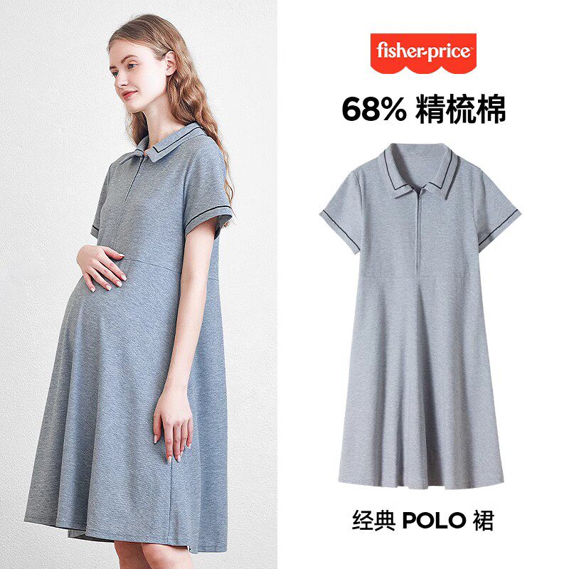 淘宝费雪孕妇连衣裙夏季大码宽松POLO领上衣小个子短袖2025新款孕妇装