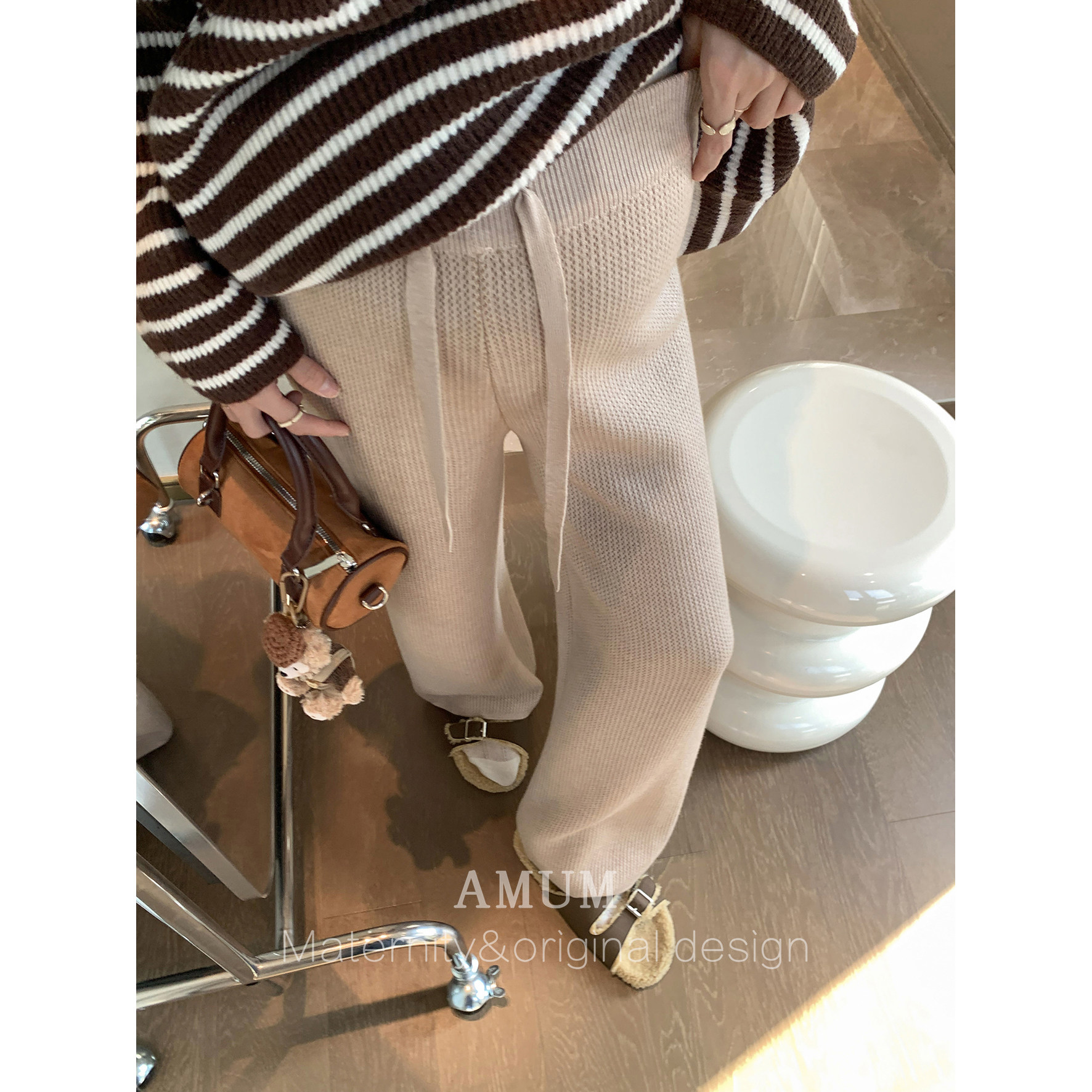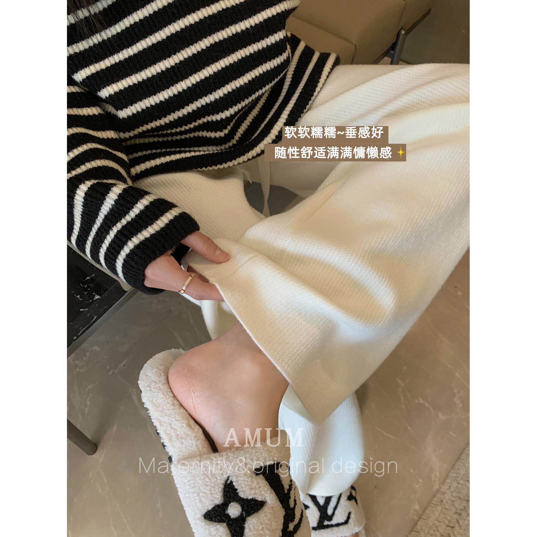 淘宝◆AMUM孕妇装◆奶芙芙纸片人~宽松阔腿休闲裤针织白色可调直筒裤