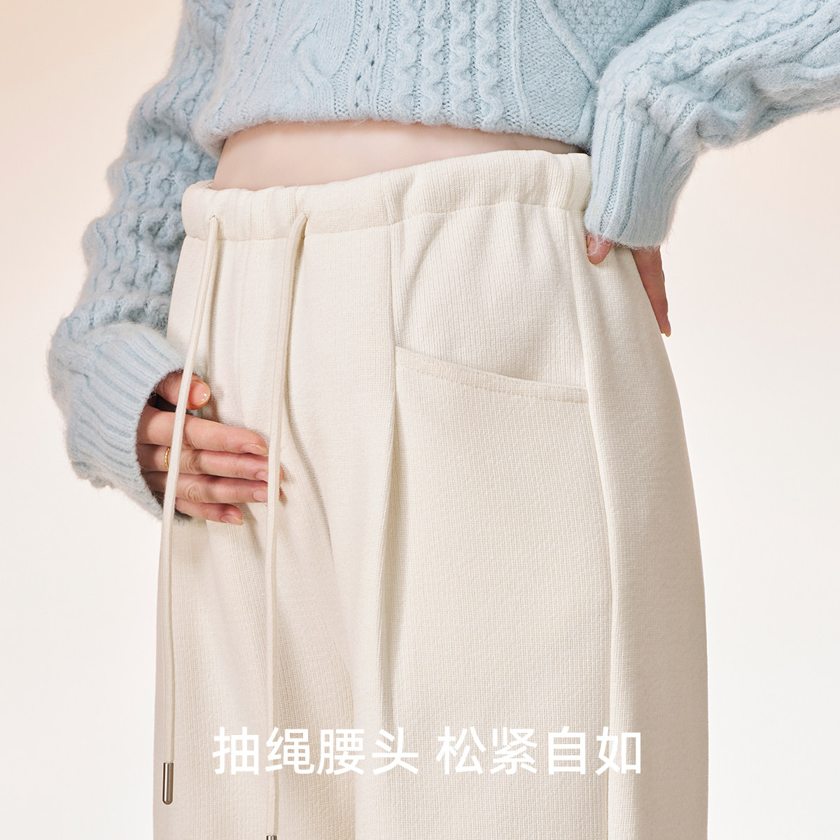 淘◆AMUM孕妇装◆奶芙芙纸片人~宽松阔腿休闲裤针织白色可调直筒裤