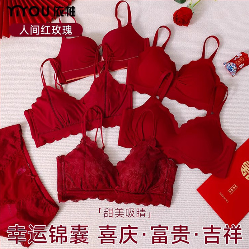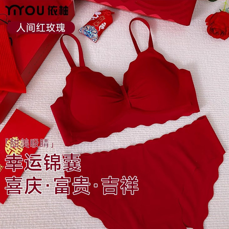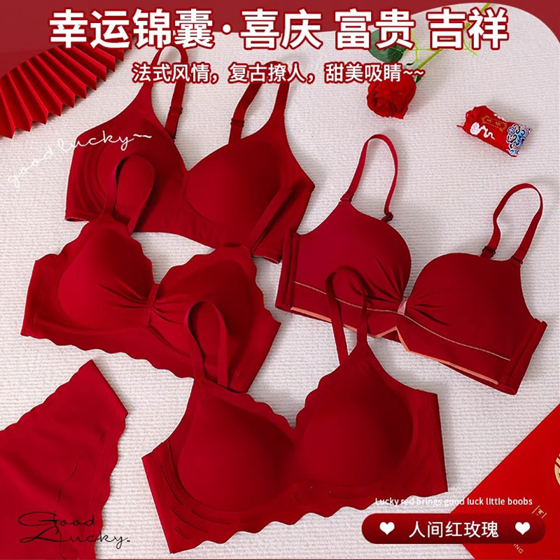 天猫红色内衣内裤文胸套装女结婚新娘本命年小胸聚拢2025蛇年新款胸罩