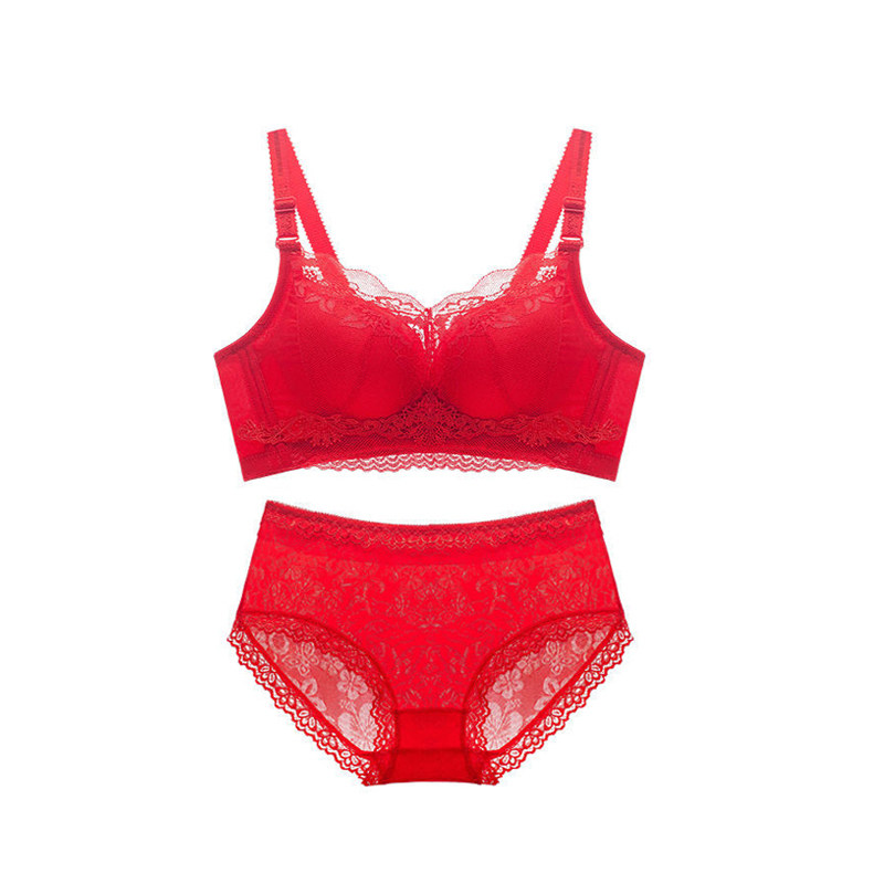 淘宝红色内衣套装本命年结婚新娘女无钢圈聚拢文胸收副乳防下垂胸罩