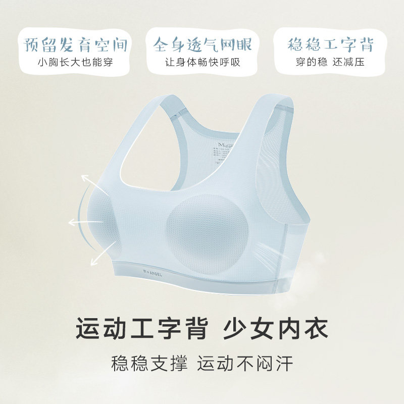 淘二阶段少女文胸女童发育中后期薄款内衣儿童宽肩无痕背心四季款
