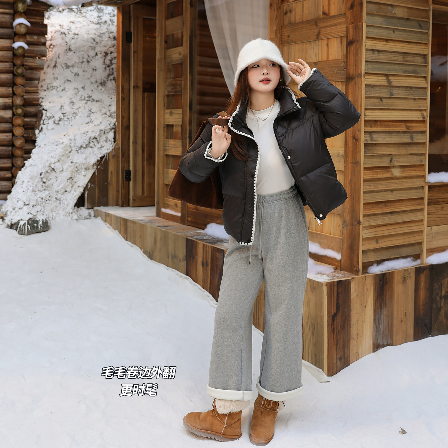 淘清仓捡漏加绒雪尼尔阔腿裤女秋冬加厚保暖羊羔绒棉裤休闲直筒裤子