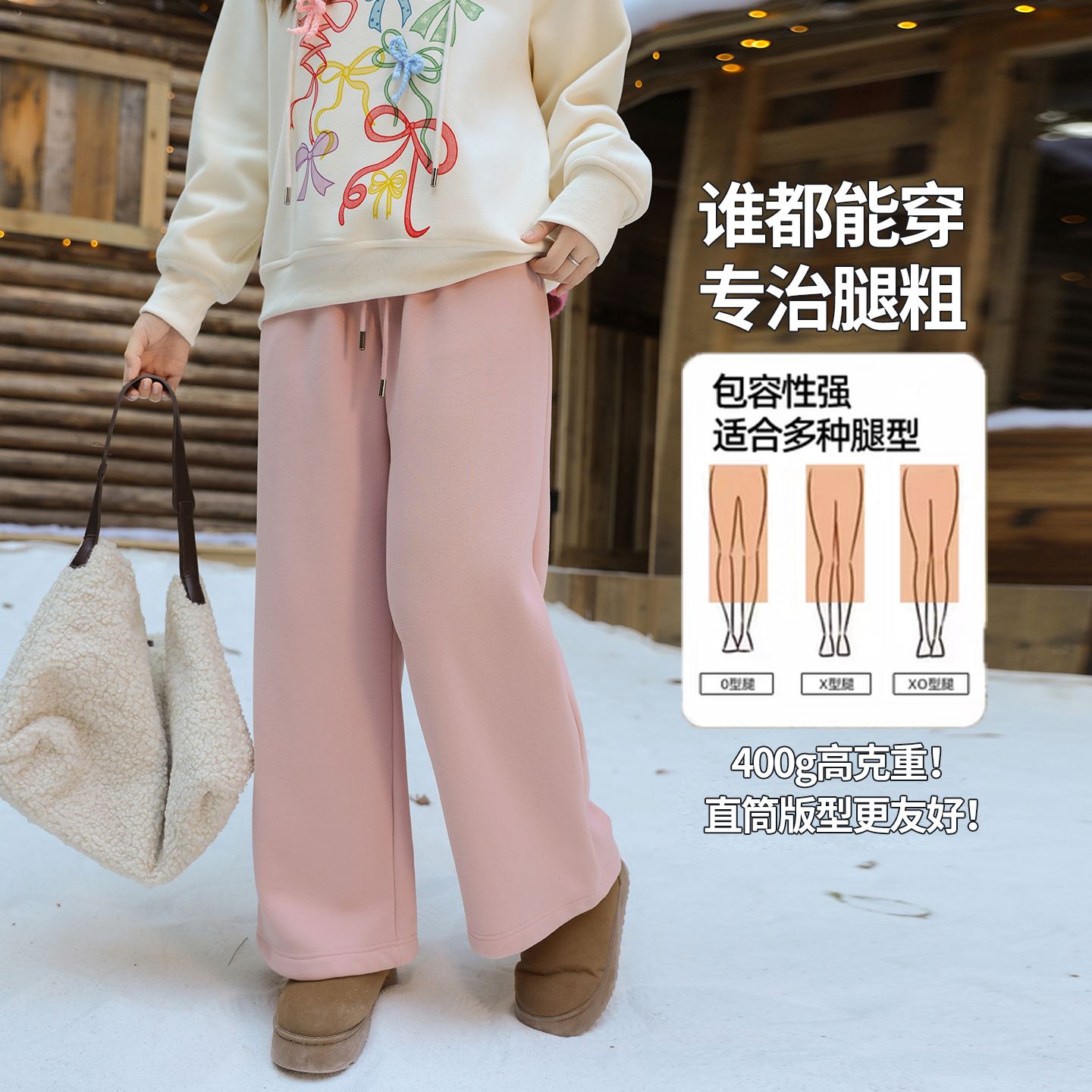 加绒加厚紫薇阔腿裤2025年爆款新款韩版直筒裤休闲高腰秋冬窄版女