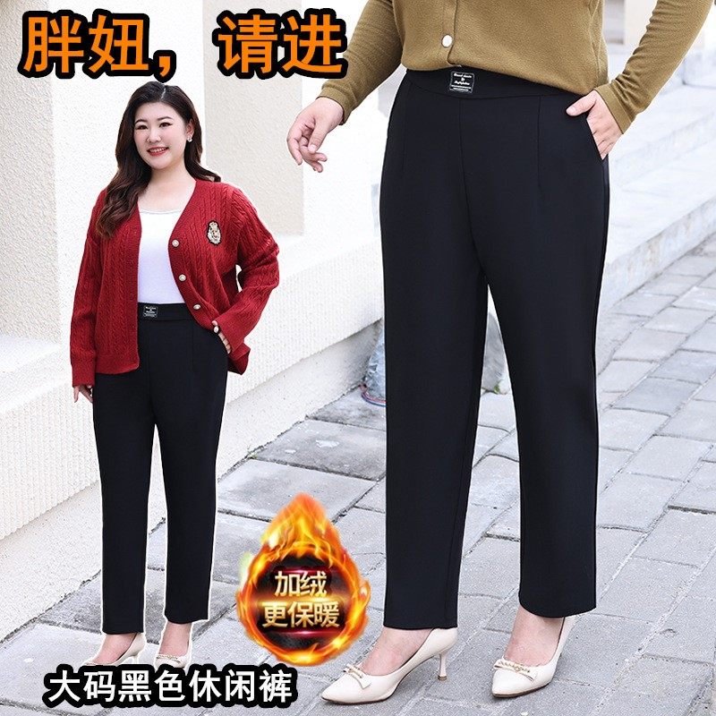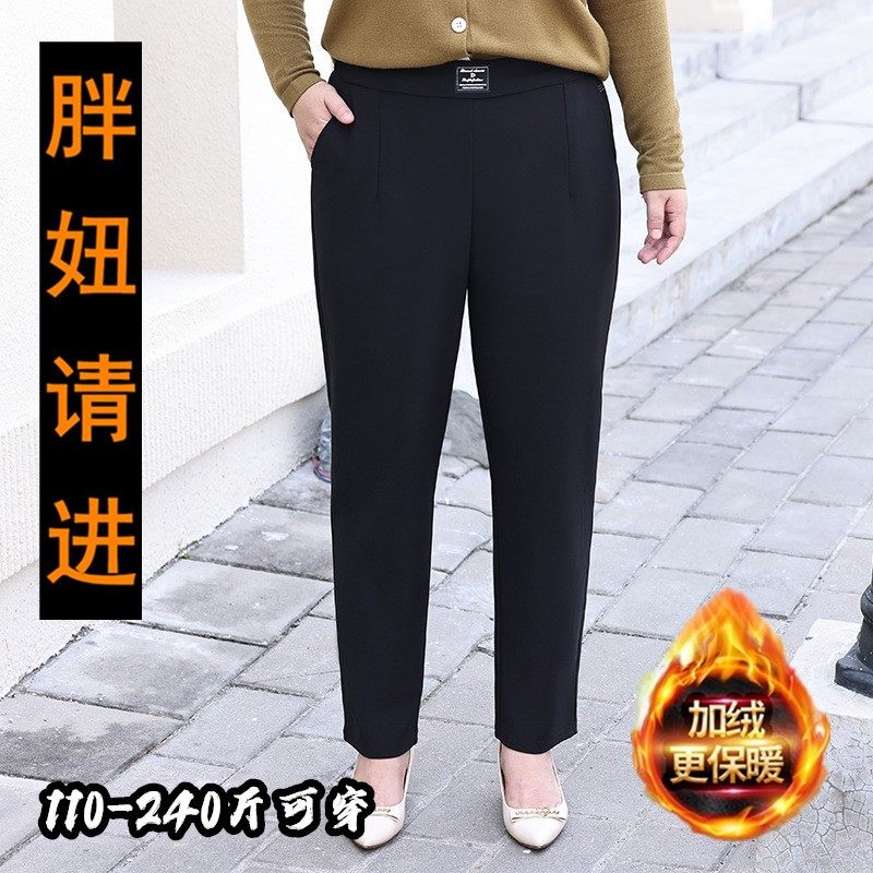 淘宝秋冬加肥大码女裤胖mm松紧加绒显瘦梨型身材百搭弹力休闲裤 200斤