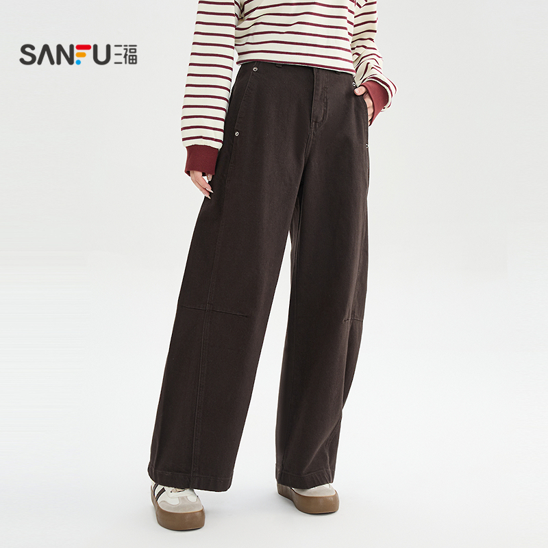 天娅丽达黑色加绒糯米裤雪尼尔阔腿裤女冬季新款直筒裤子宽松休闲裤