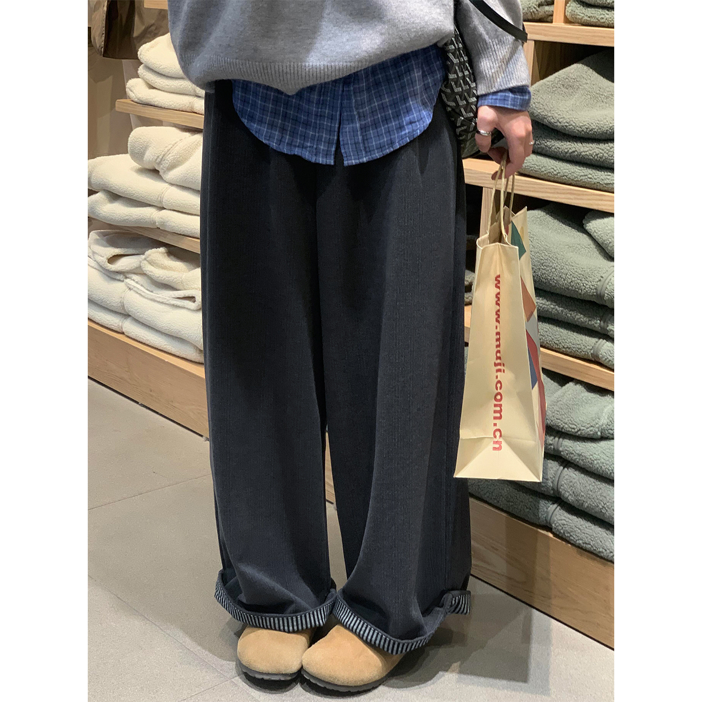 美拉德咖色灯芯绒阔腿女秋冬加绒胖妹妹mm高腰宽松显瘦直筒休闲裤