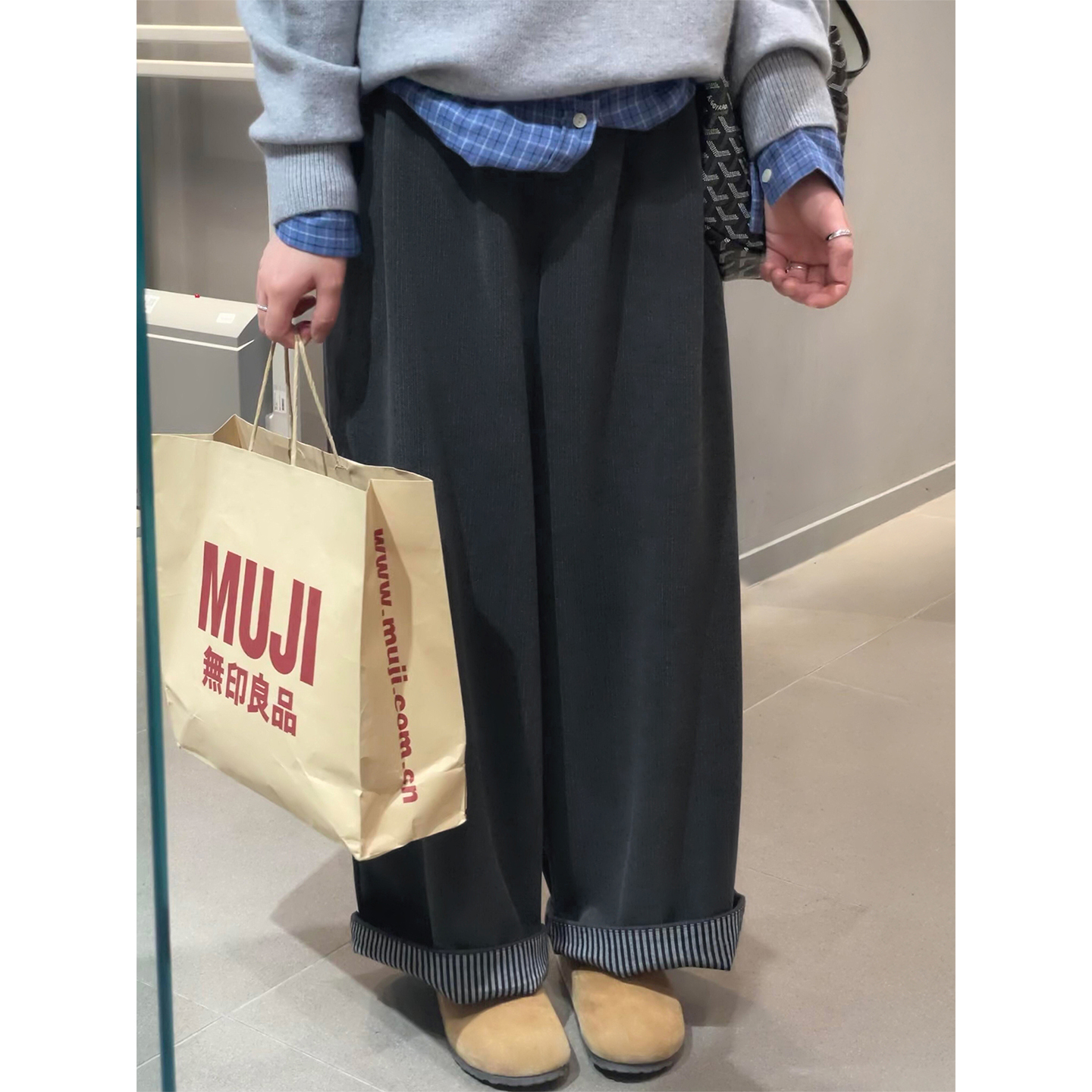 深灰色糯米休闲裤女秋冬新款胖妹妹mm高腰宽松显瘦垂感阔腿长裤子