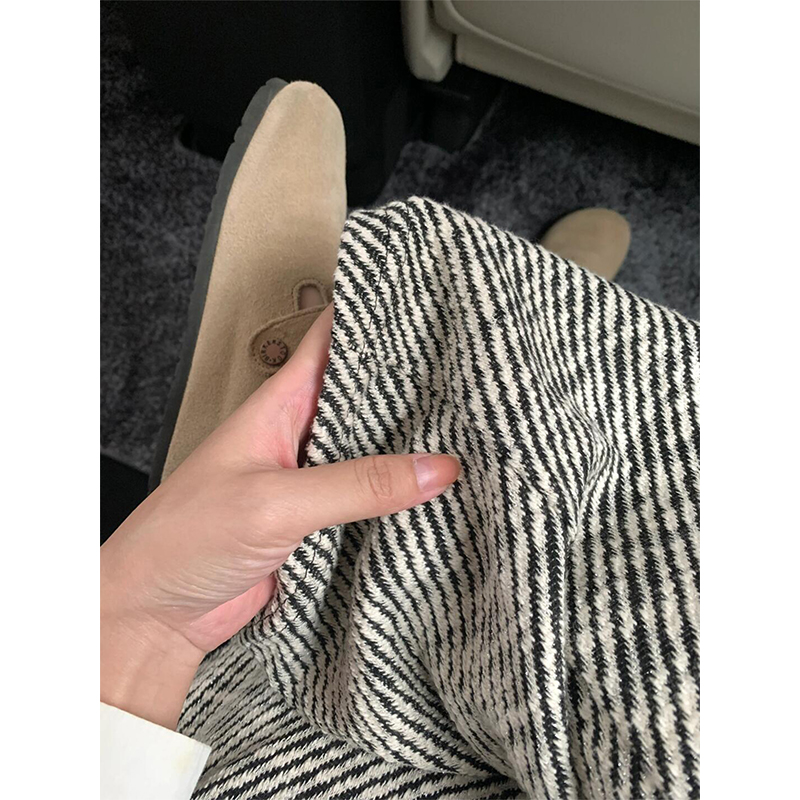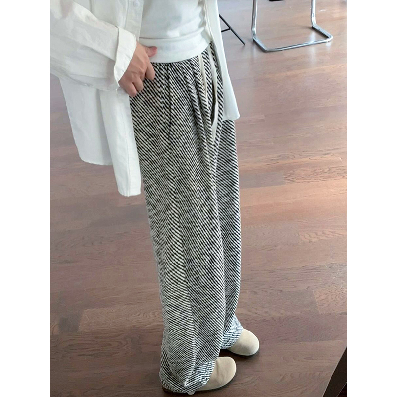 淘宝小香风条纹直筒休闲裤女秋冬加绒胖妹妹mm高腰宽松显瘦垂感阔腿裤