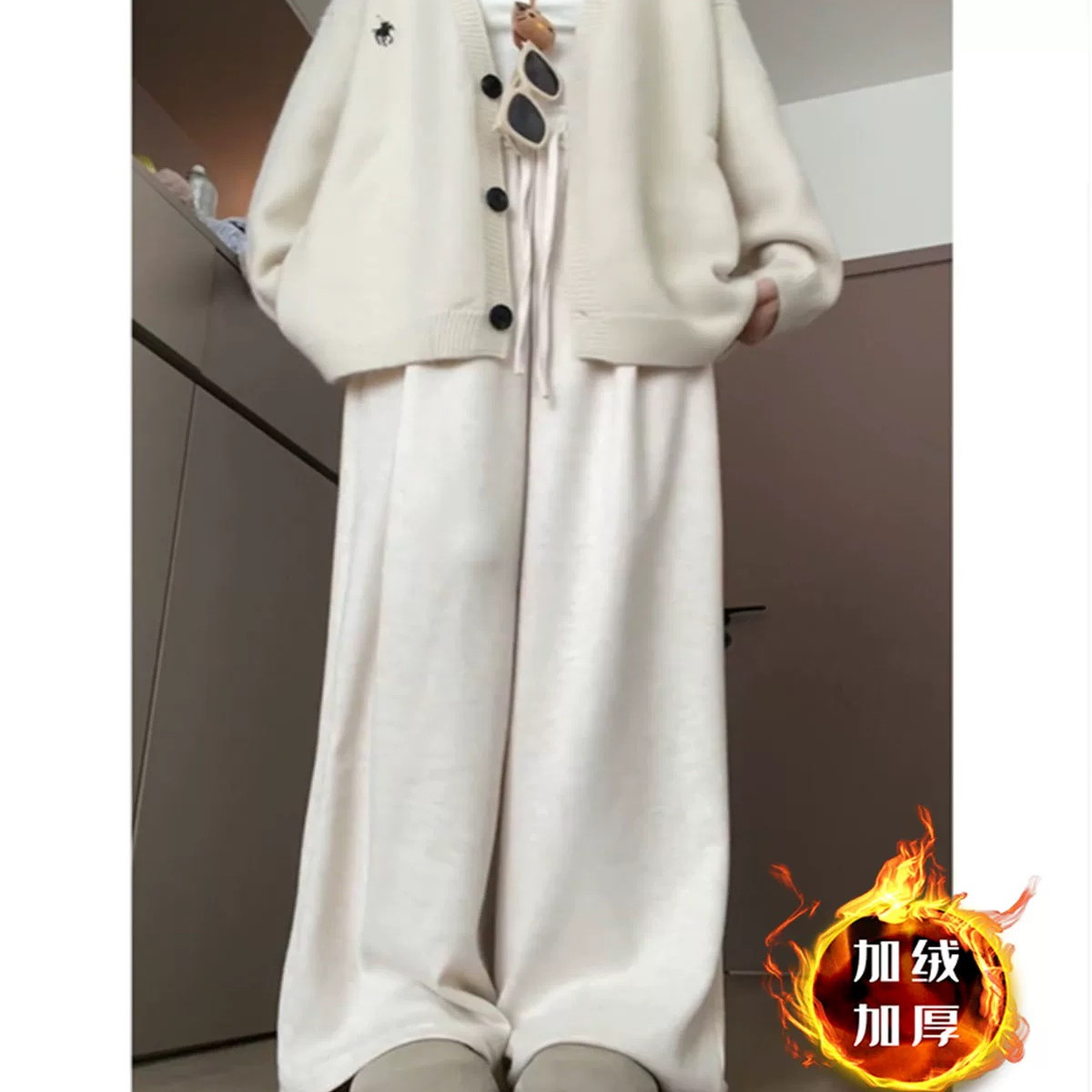 淘宝衣之派米白色糯米裤冬季胖MM显瘦直筒垂感休闲宽松慵懒风阔腿裤