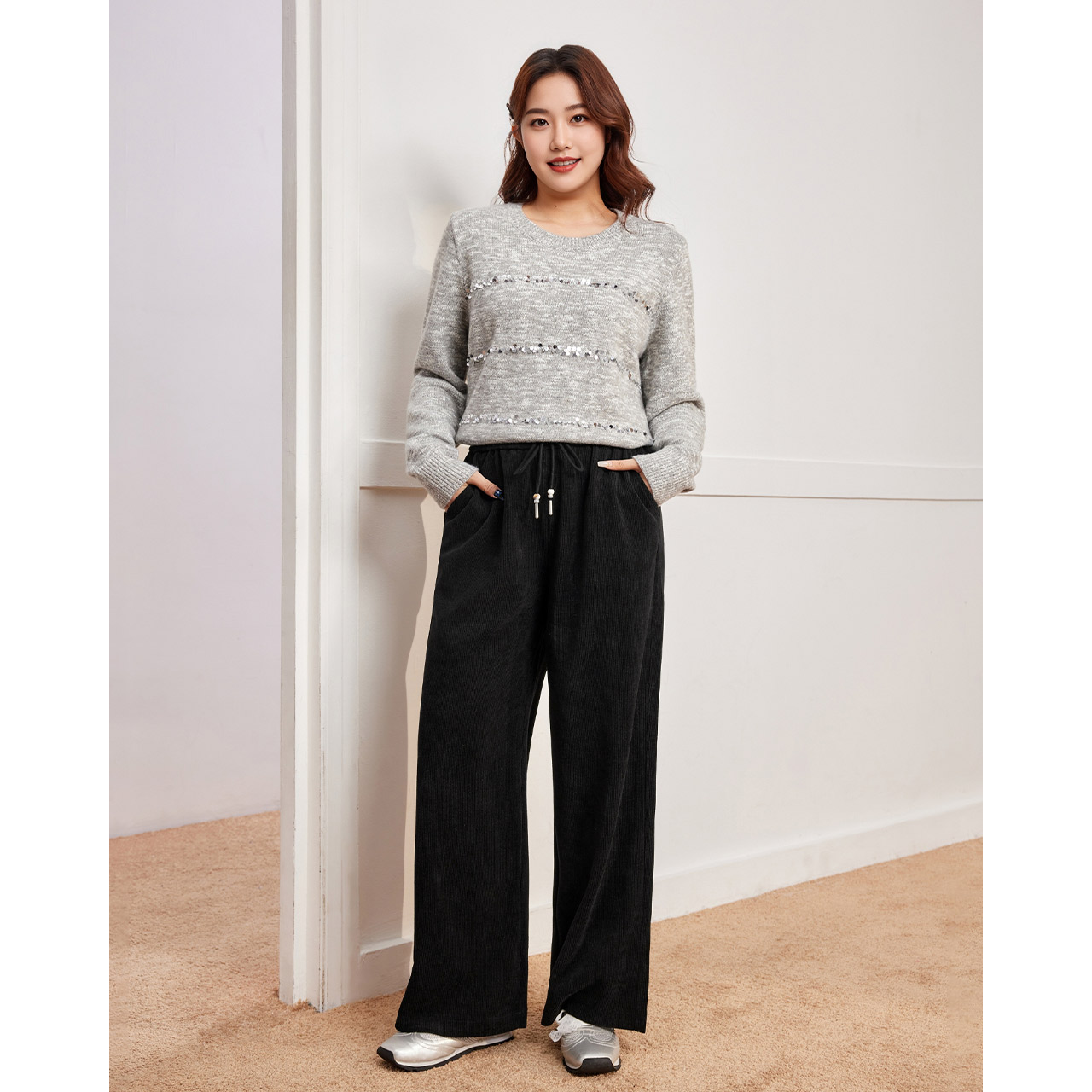 大码垂感糯米阔腿裤女新款秋冬季加绒慵懒毛巾裤窄版直筒休闲裤子