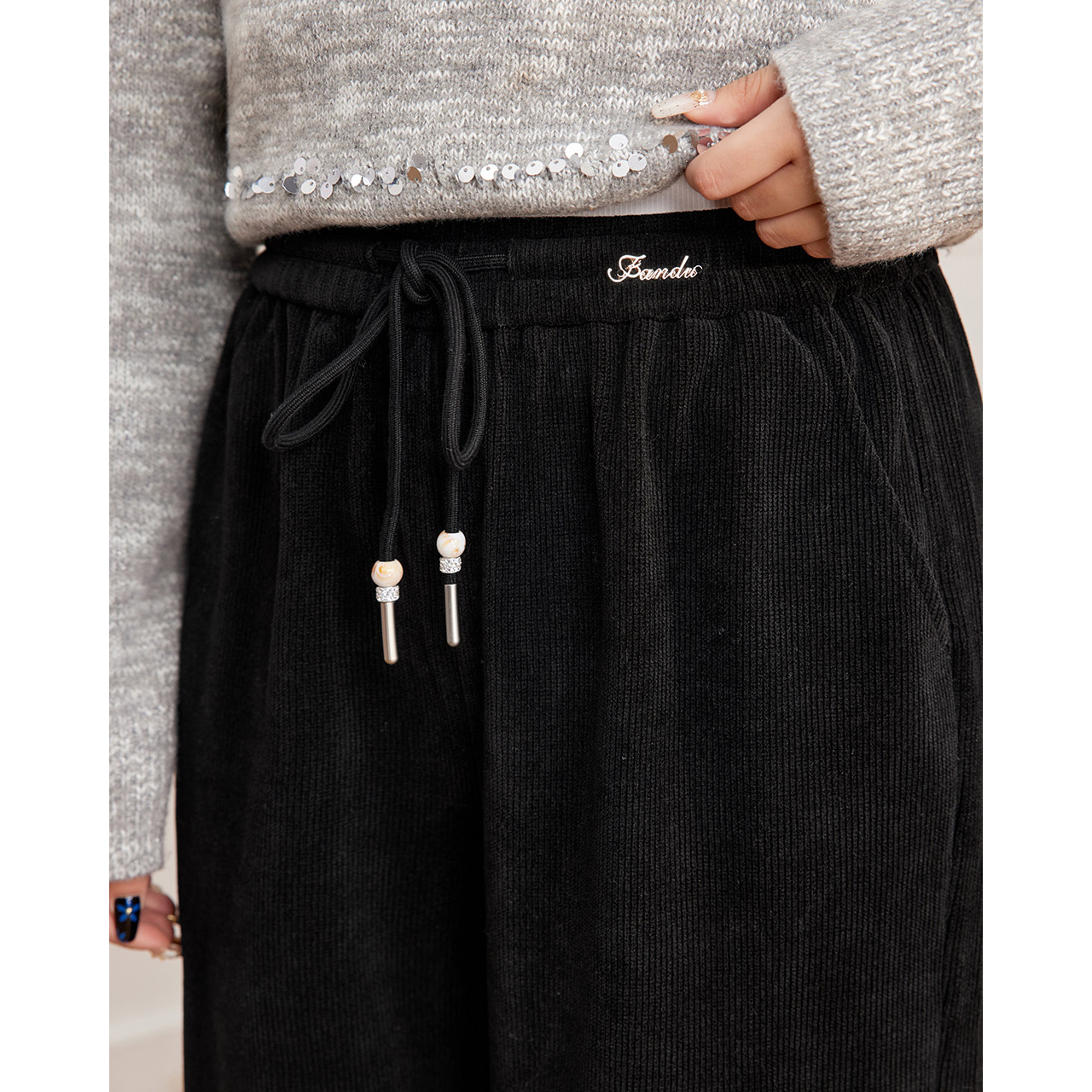 热风女士直筒卫裤2025年秋季新款花边宽松休闲长裤松紧腰舒适卫裤