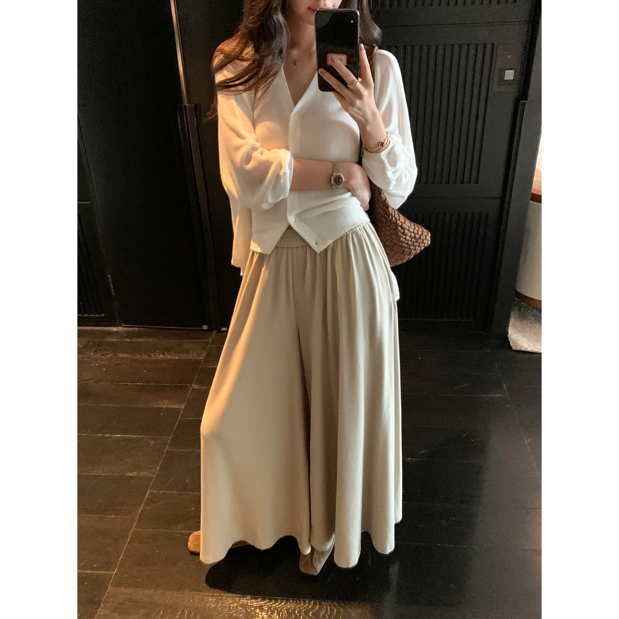 淘宝pusumede 极简舒适区 慵懒垂感休闲阔腿裤女松紧腰裙裤针织长裤