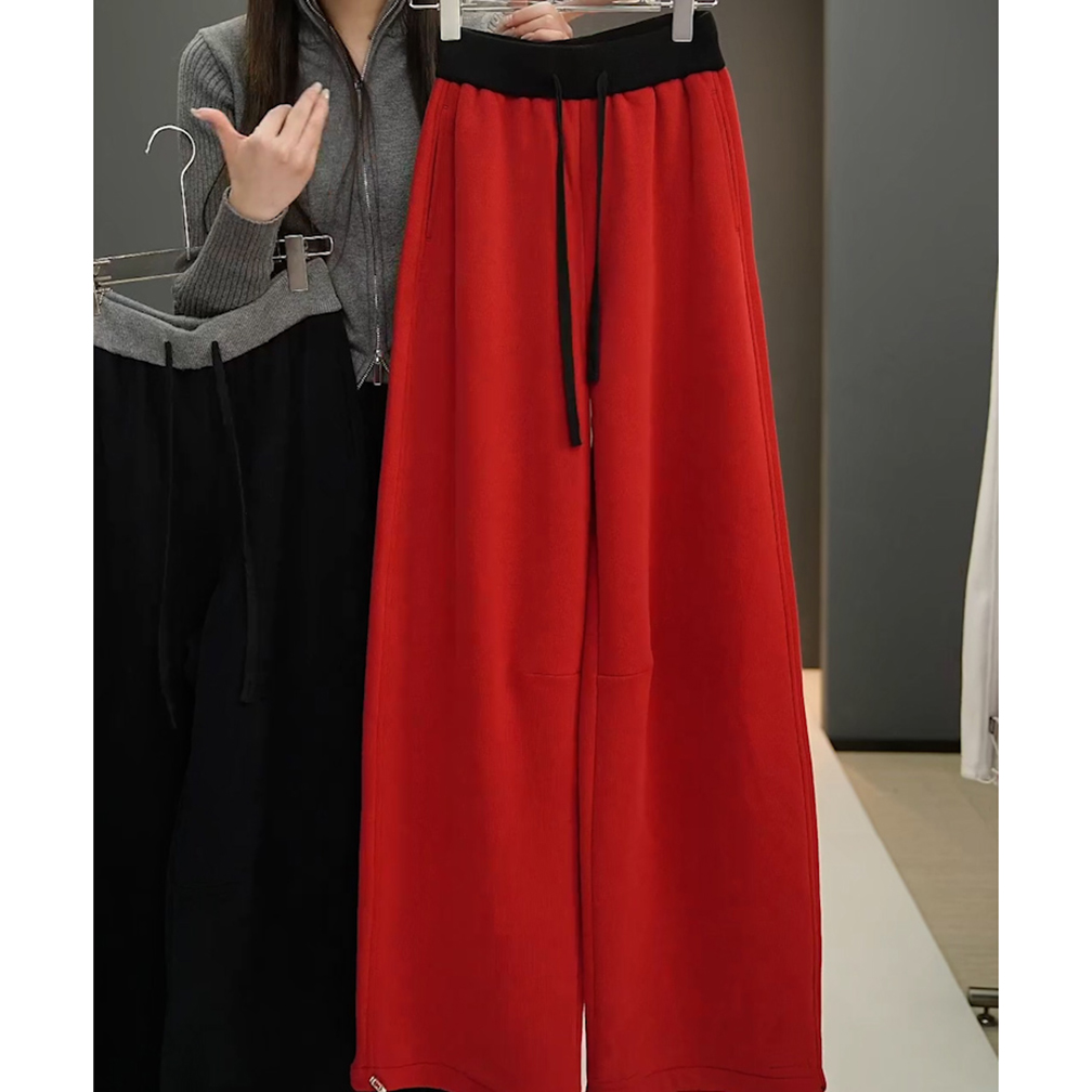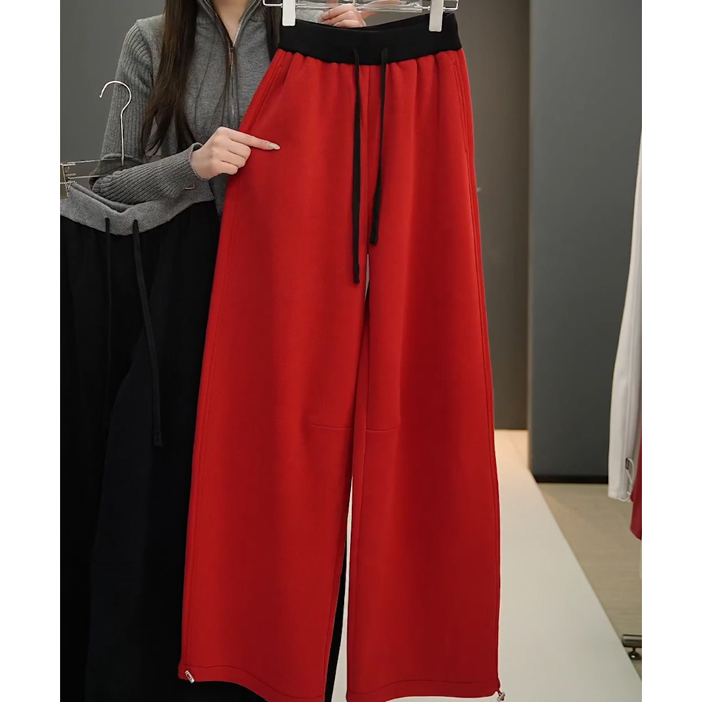 淘大码胖mm欧棉绒阔腿裤女2025新款秋冬季窄版黑色休闲冬季加绒裤子