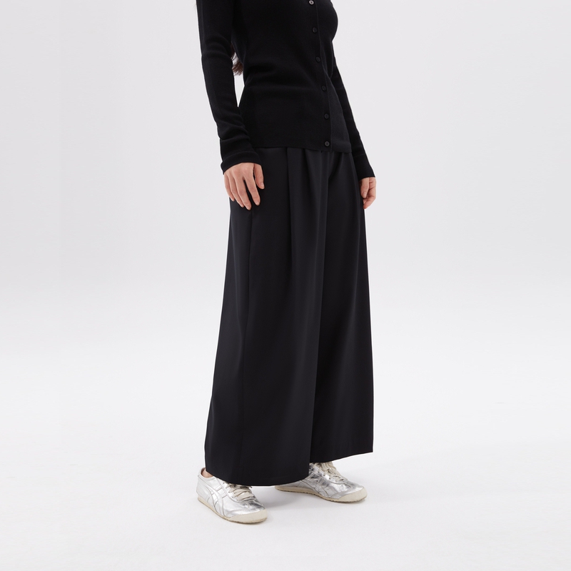 pusumede 极简舒适区 慵懒垂感休闲阔腿裤女松紧腰裙裤针织长裤