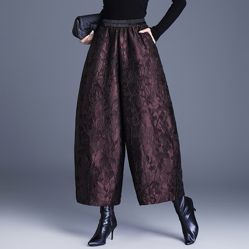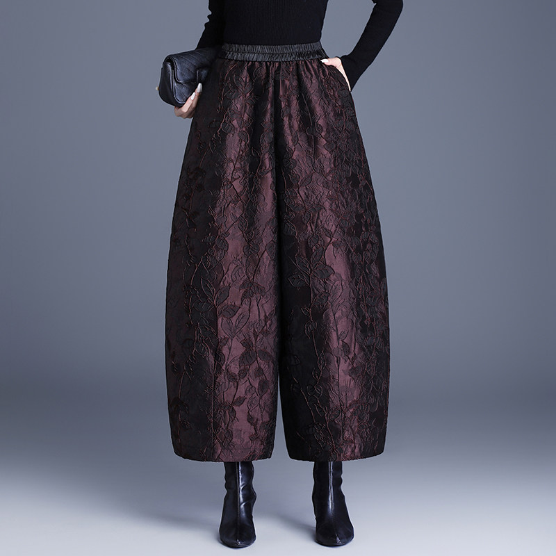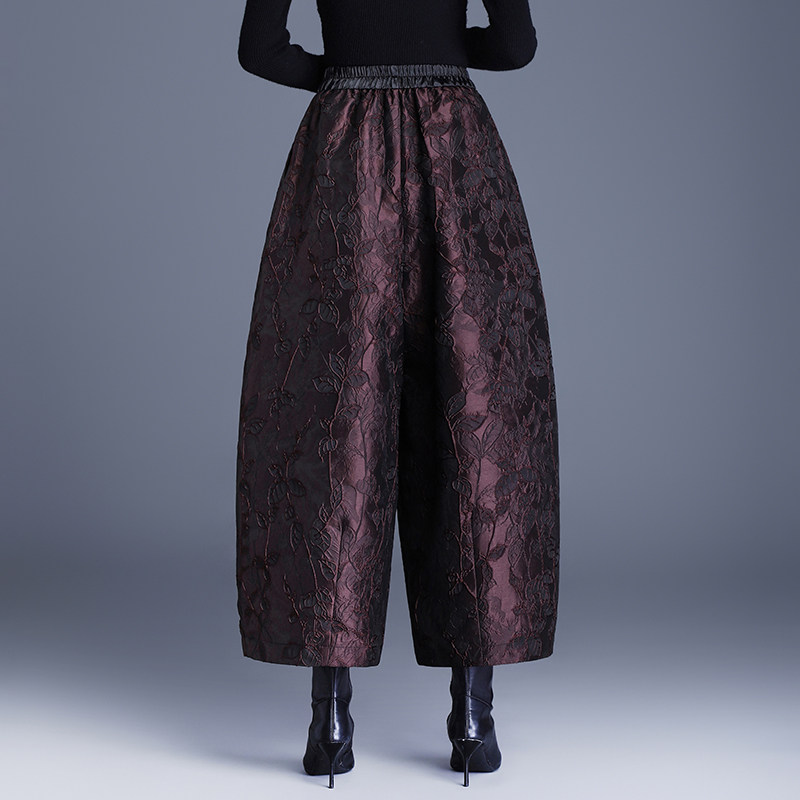 淘宝国风浮雕提花茧型阔腿裤女秋冬新款保暖棉裤休闲九分花苞裤胖裤腿
