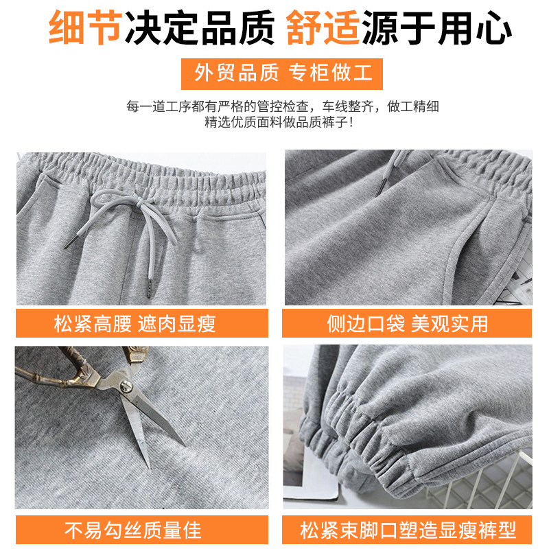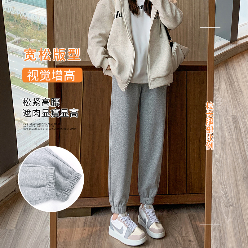 2025新款阔腿休闲裤女春秋加厚不加绒显瘦宽松高腰束脚纯棉哈伦裤