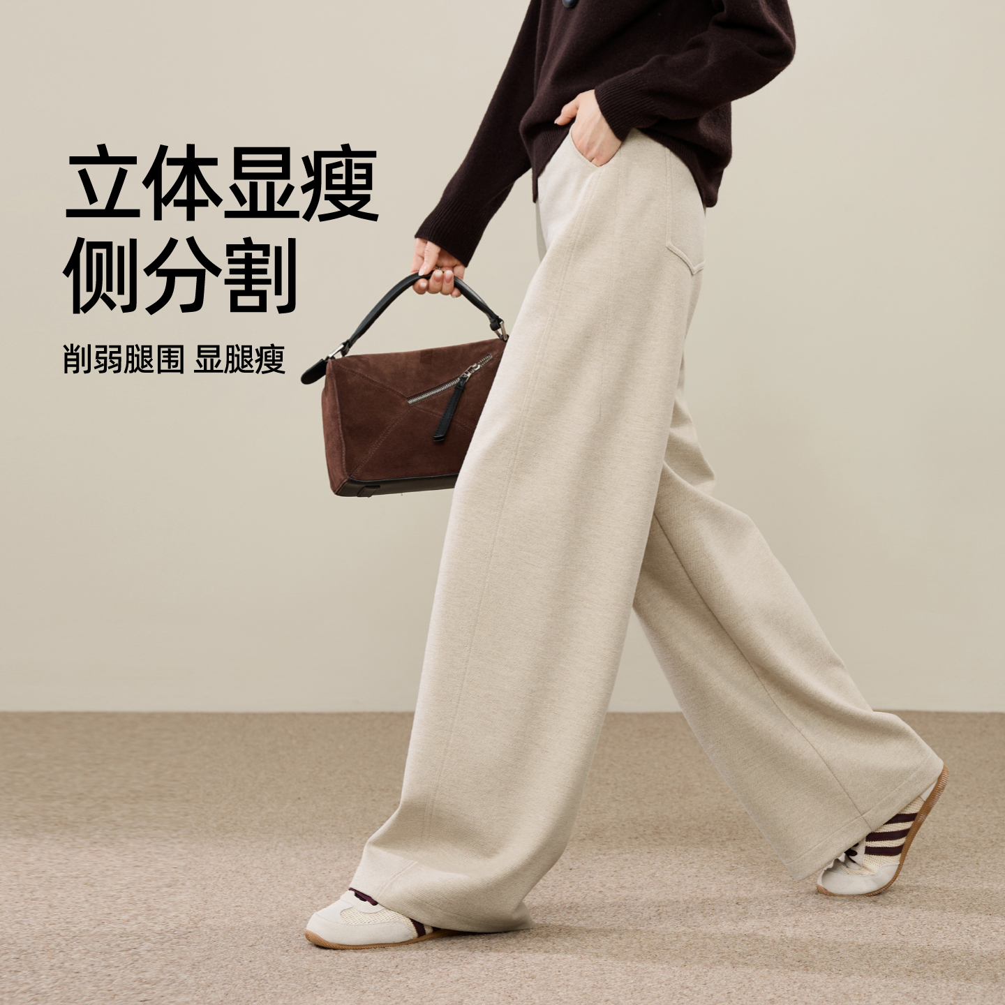 淘pusumede 极简舒适区 慵懒垂感休闲阔腿裤女松紧腰裙裤针织长裤