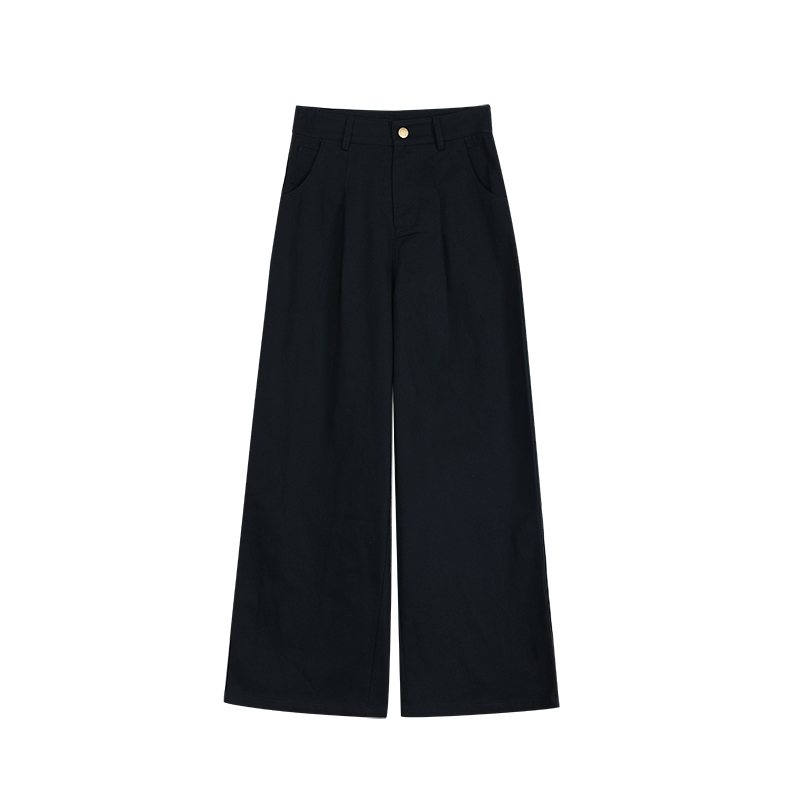 淘宝pusumede 极简街头 黑色高腰垂感阔腿裤女宽松休闲直筒拖地长裤