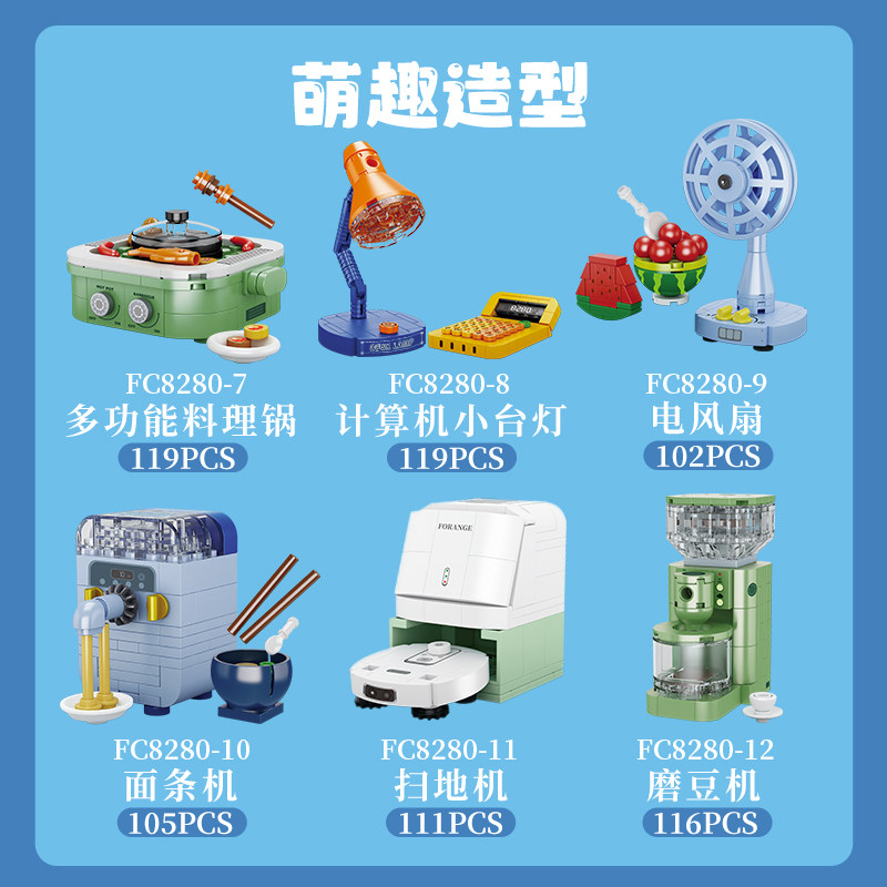 淘宝方橙积木中国玩具儿童益智力拼装迷你家电洗碗机风扇模型男孩拼插