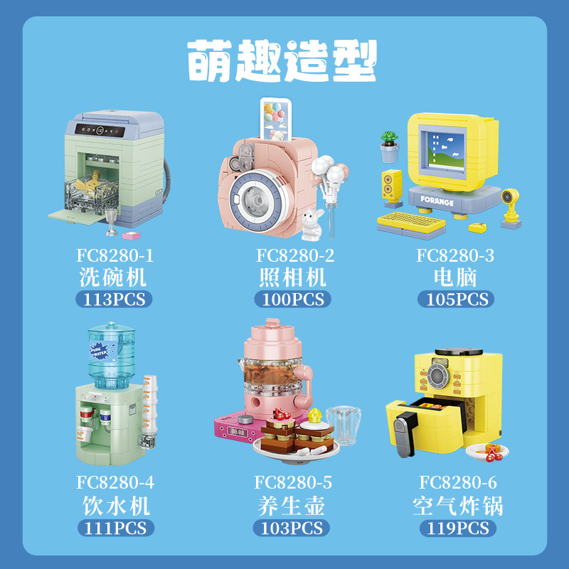 淘积木迷你小家电积木洗碗照相饮水机台灯风扇空气S炸料理锅电脑拼