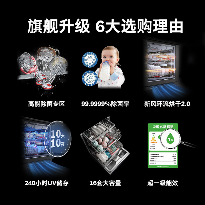 天猫【新风环流】博世新风V10洗碗机16套嵌入式全自动家用黑曜石三代