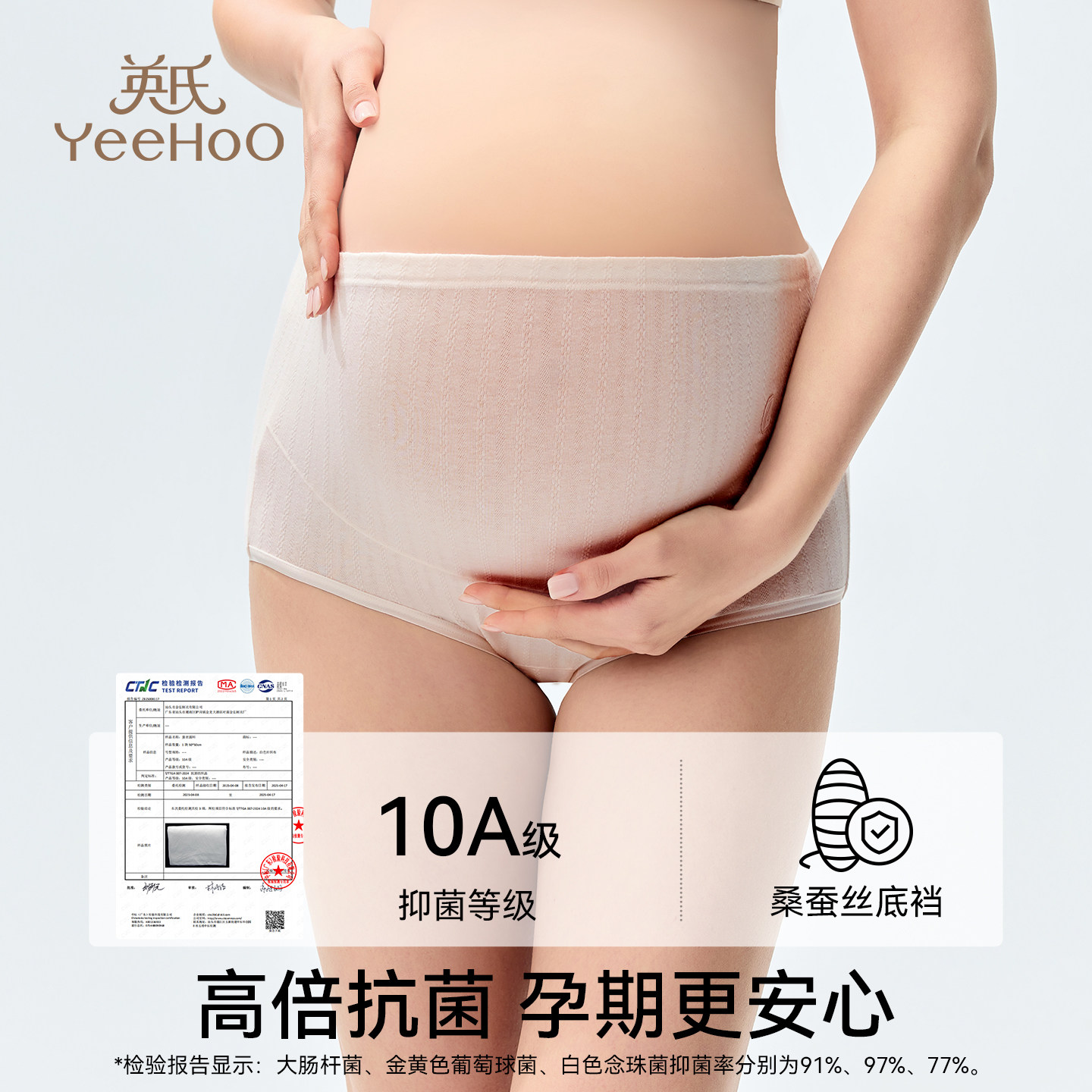 英氏孕妇内裤高腰托腹10A抑菌桑蚕丝底档孕中晚期大码透气三角裤