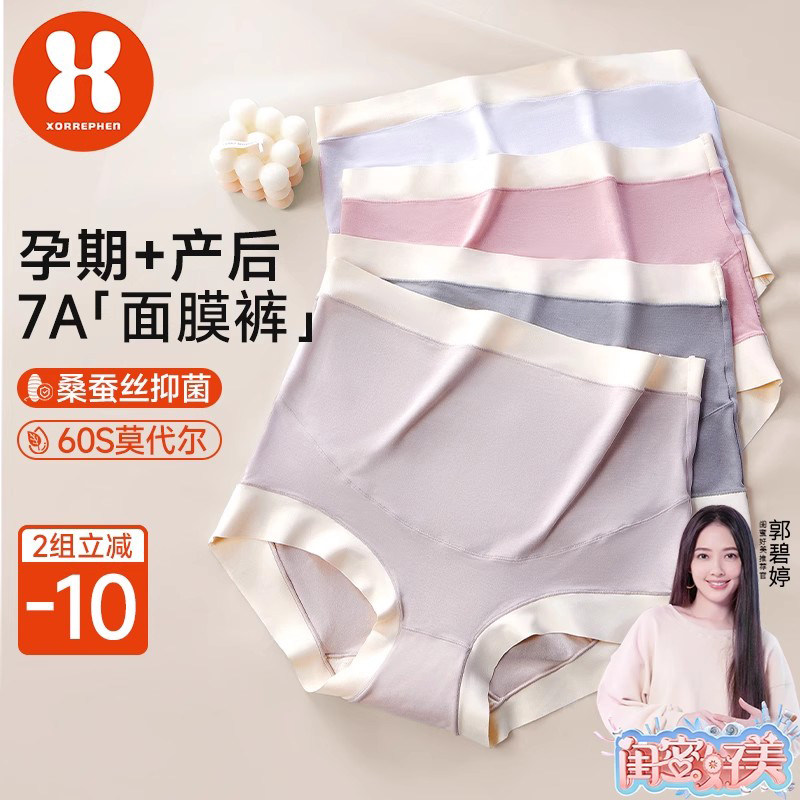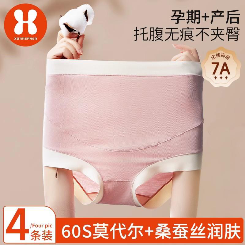 淘孕妇高腰护肚内裤莫代尔拼色弹力薄款底裤双层裆不夹PP四季款