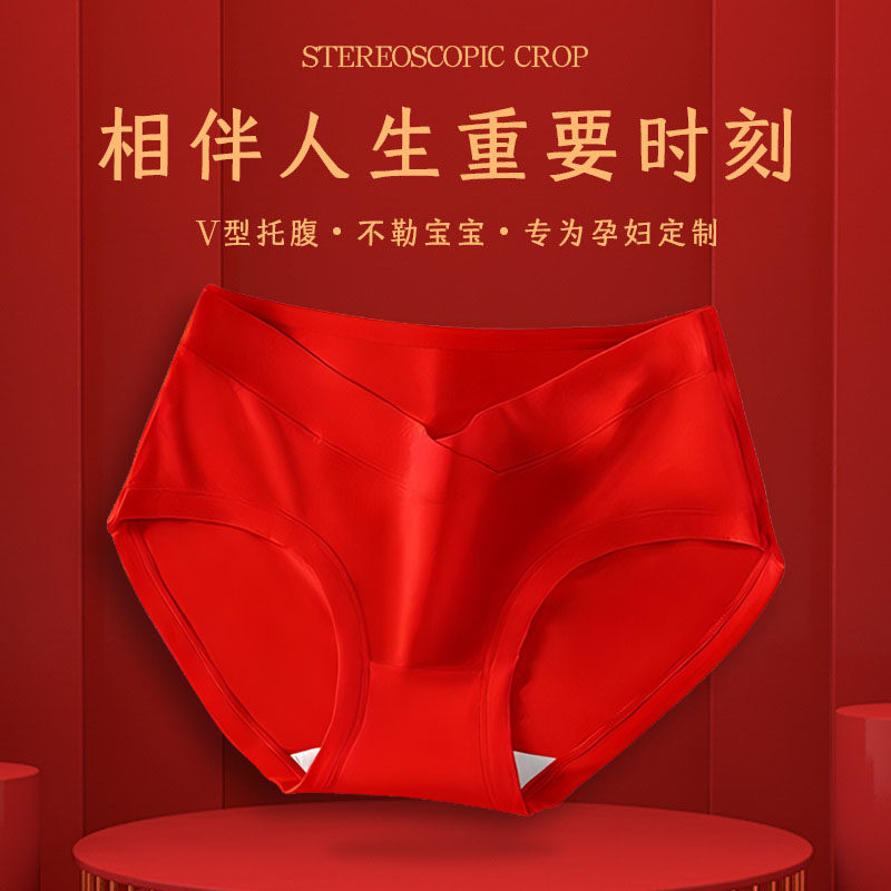 天猫红色孕妇内裤薄款蚕丝裆低腰托腹怀孕期专用早中晚期本命年红短裤