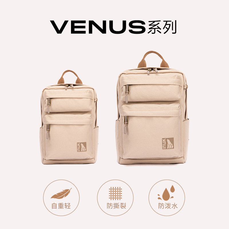 天猫Inuk轻便环保双肩包女通勤时尚百搭大学生小方包书包户外旅行背包